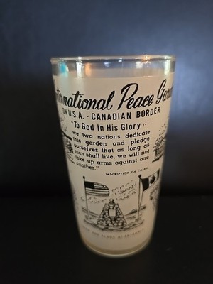 - Vintage International Peace Garden Souvenir Glass Canada Frosted Black Lettering