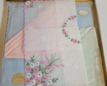 - Vintage Ireland Embroidered Handkerchiefs NEW 4 Irish Linen Etonia Opal Floral