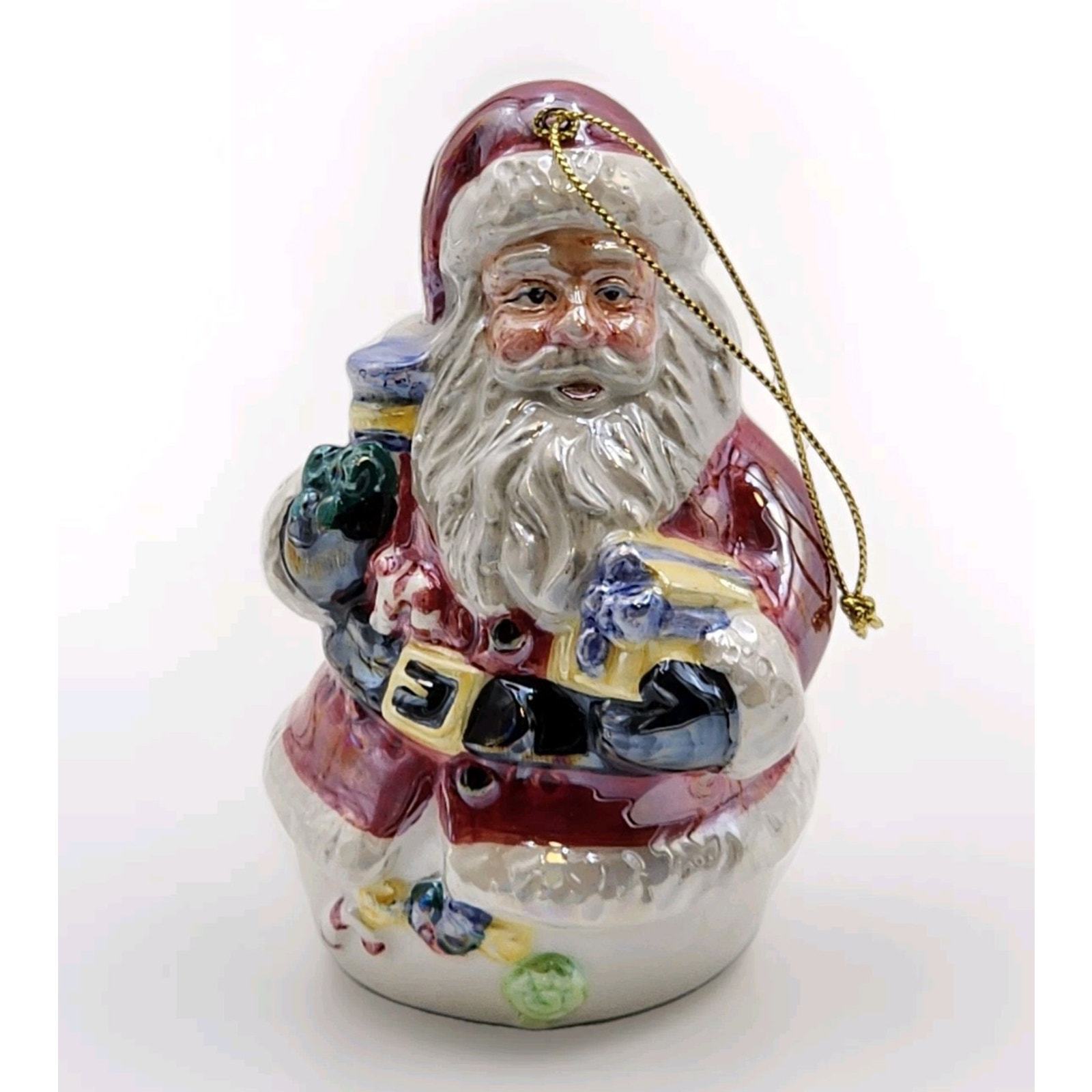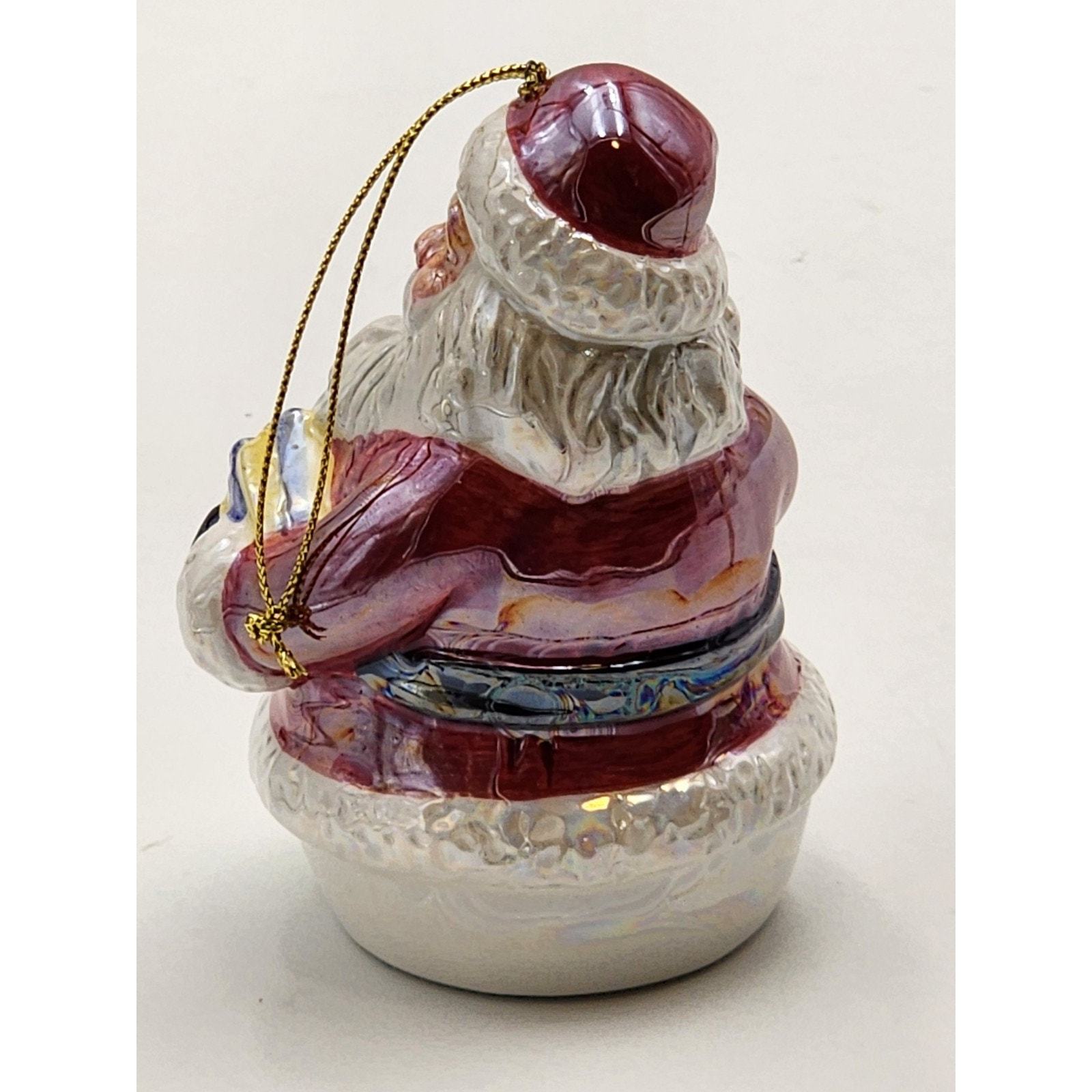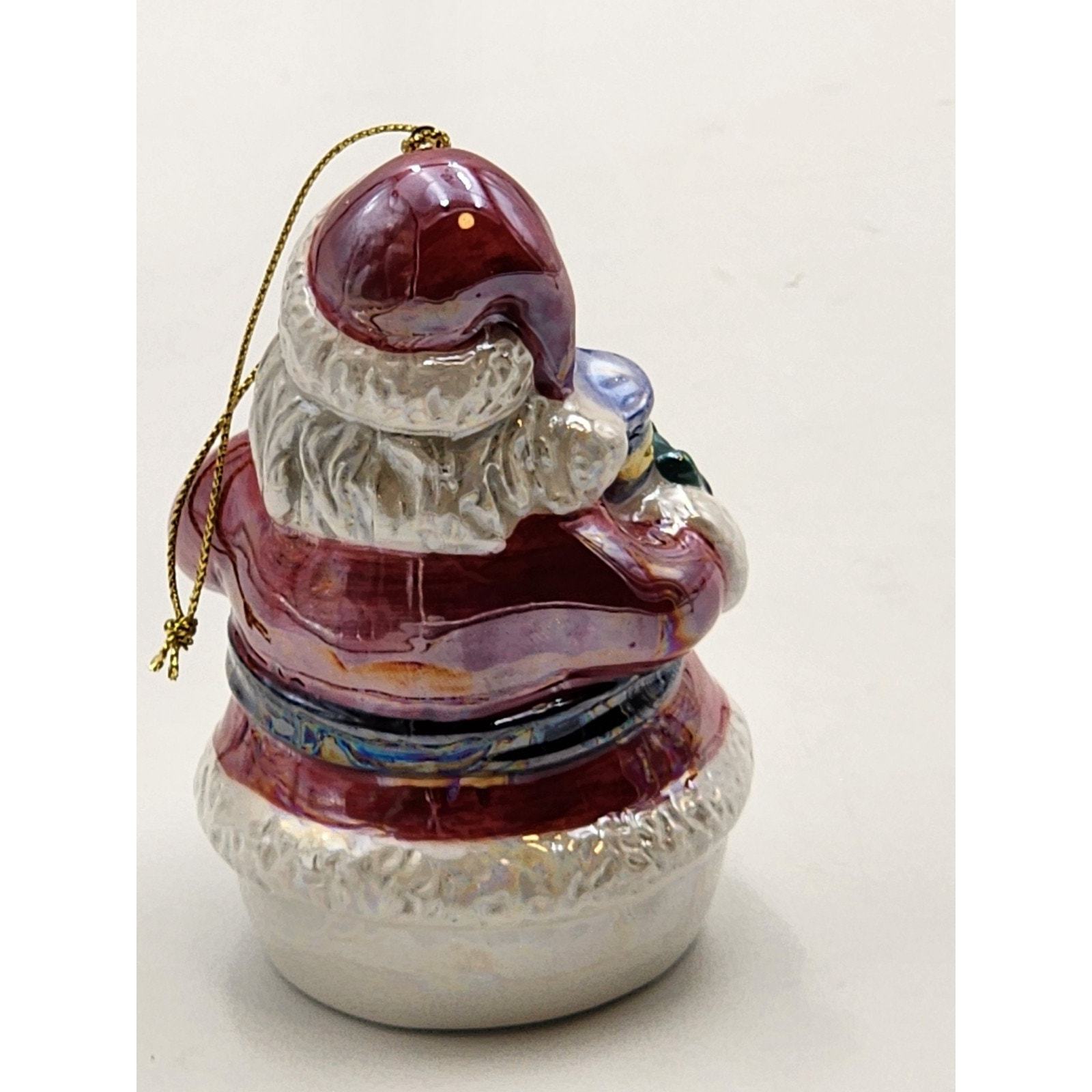 - Vintage Iridescent Glazed Ceramic Santa with Presents Christmas Ornament