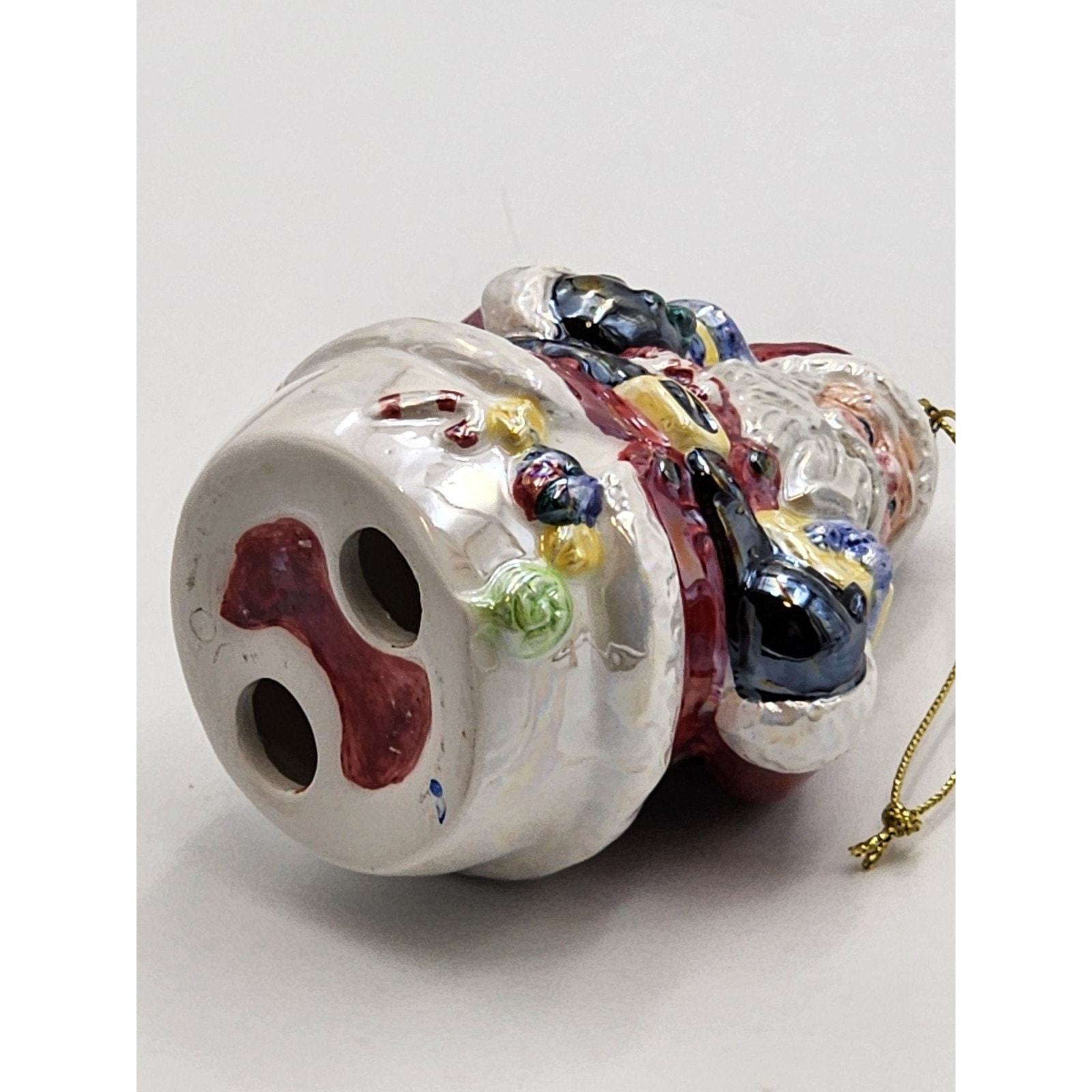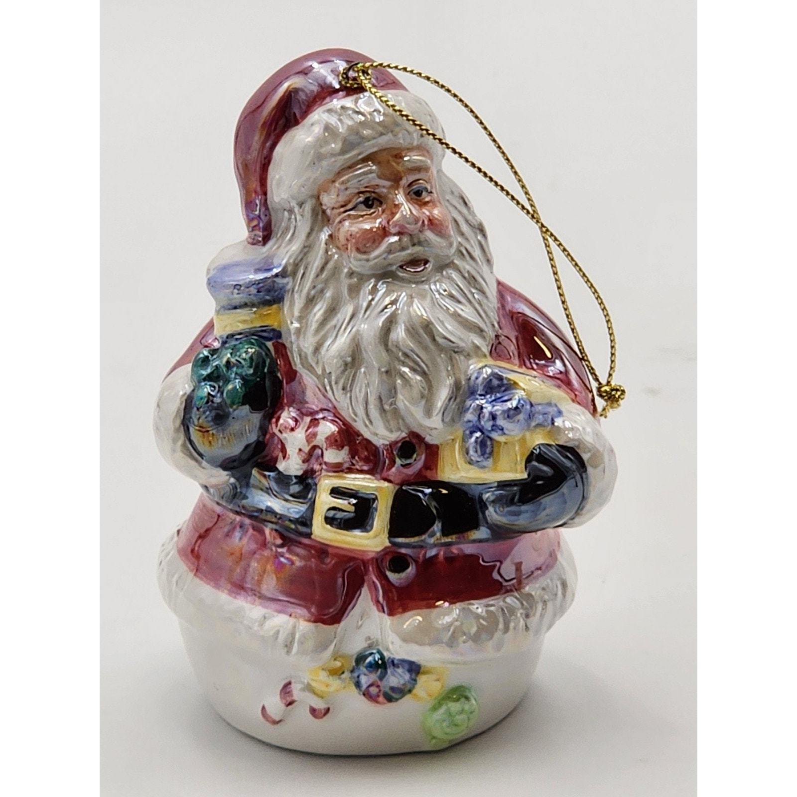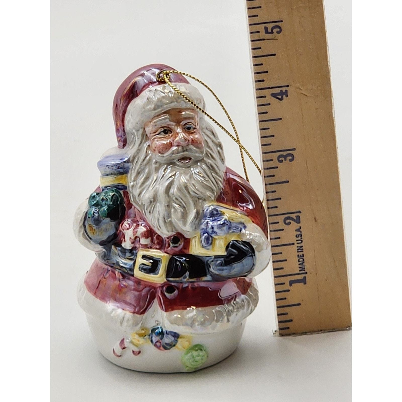 - Vintage Iridescent Glazed Ceramic Santa with Presents Christmas Ornament