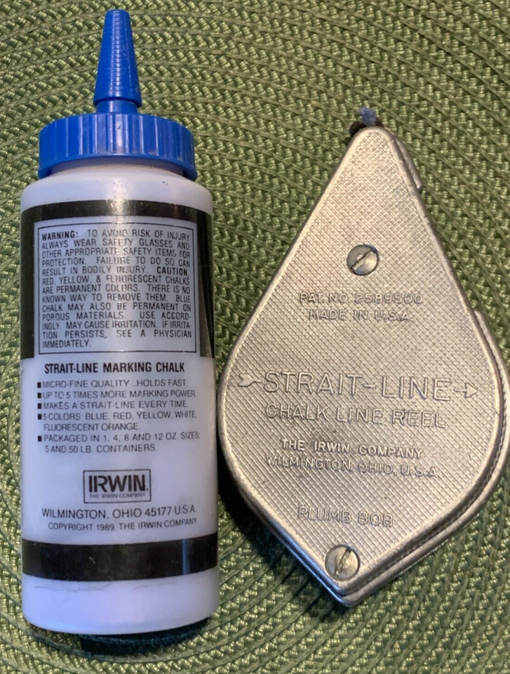 - Vintage Irwin Straight-Line Chalk Line Reel Plumb Bob Metal Tool USA [e-10]