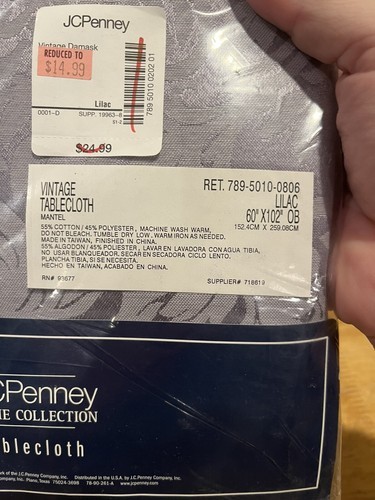 - Vintage JC Penney Home Damask Lilac Purple Tablecloth Oblong 60” X 102” NOS
