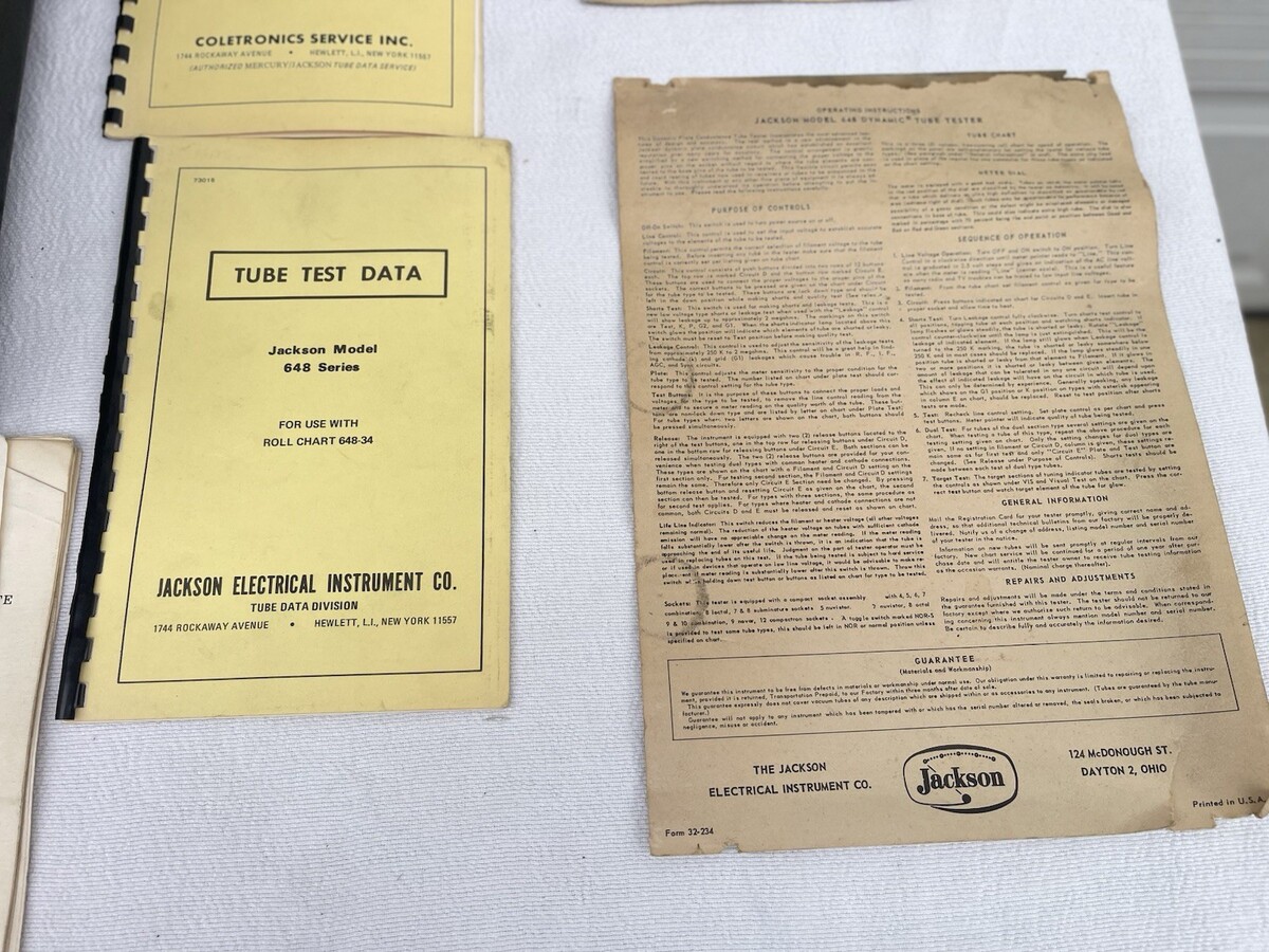 - Vintage Jackson 648S Mutual Conductance Dynamic Tube Tester Checker