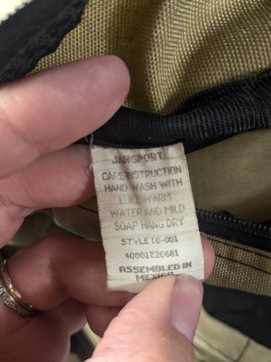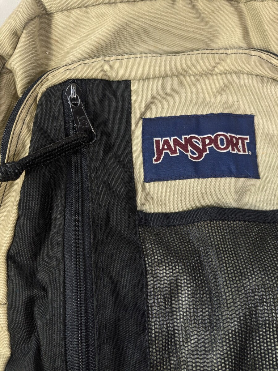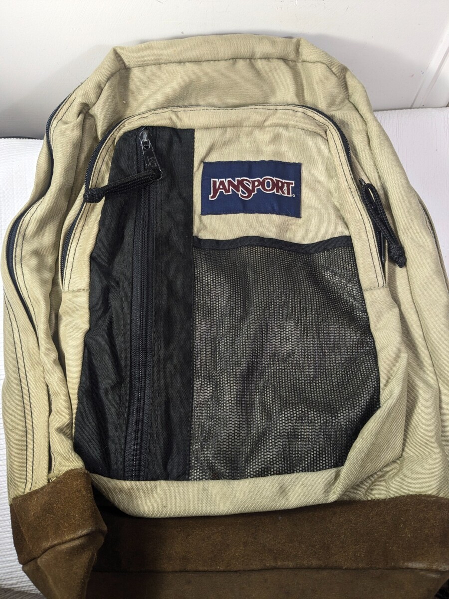 Vintage Jansport backpack suede leather bottom tan brow black mesh front Mexico