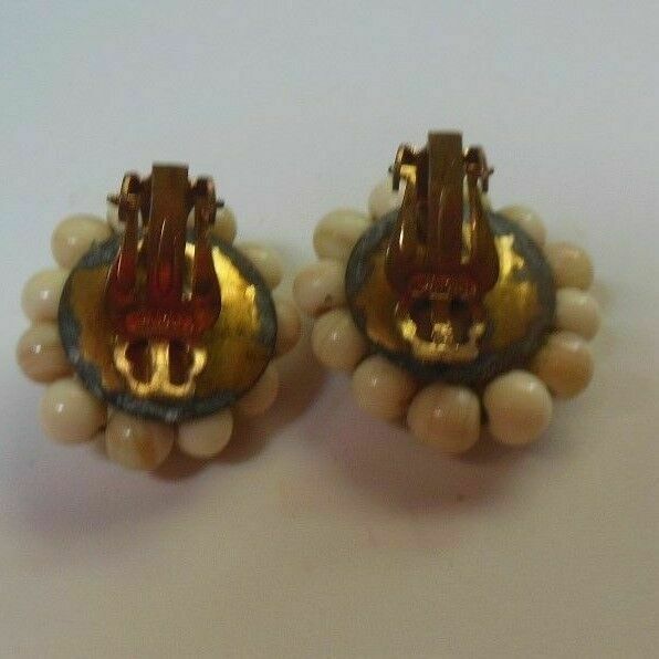 - Vintage Japan Signed Glass Bead Cluster Faux Pearls Clip-on Earrings