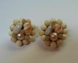Vintage Japan Signed Glass Bead Cluster Faux Pearls Clip-on Earrings