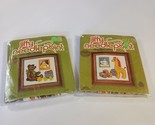 The Vintage Jiffy Needlepoint Teddy Bear and Giraffe kits by Sunset Designs are charming crafts that offer a nostalgic touch to any space. Made in the United States, these needlepoint kits feature adorable designs of a teddy bear and giraffe, perfect for adding a whimsical element to your home decor. The kits provide materials and instructions to create beautiful handmade pieces that capture the charm of these beloved animals. Photo frames not included. Sealed packages with some wear to the packages. See pictures.