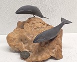 - Vintage John Perry 2 Humpback Gray Whales Sculpture on Burlwood Base