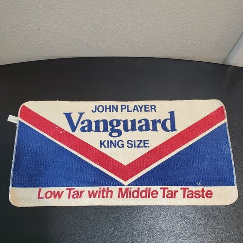 Nice pre-owned Condition. Rare Vintage Telision Nottrn Ltd. John Player Vanguard King Size Low Tar with Middle Tar Taste Cigarettes Bar Beer Towel. Has some light wear / use. Tan / Red / Blue. Approximate Size: 17" x 8.5".