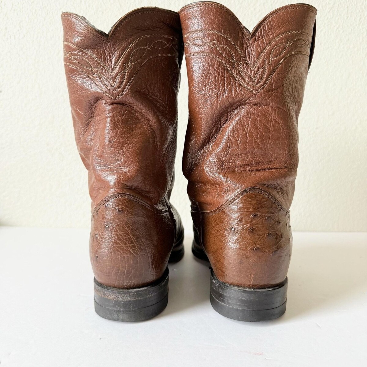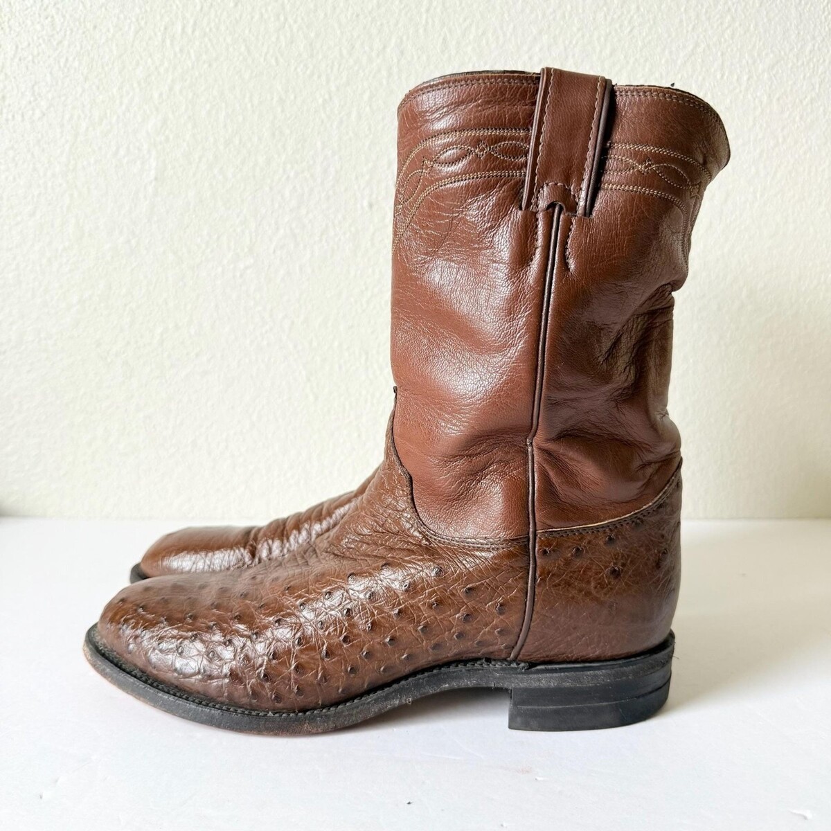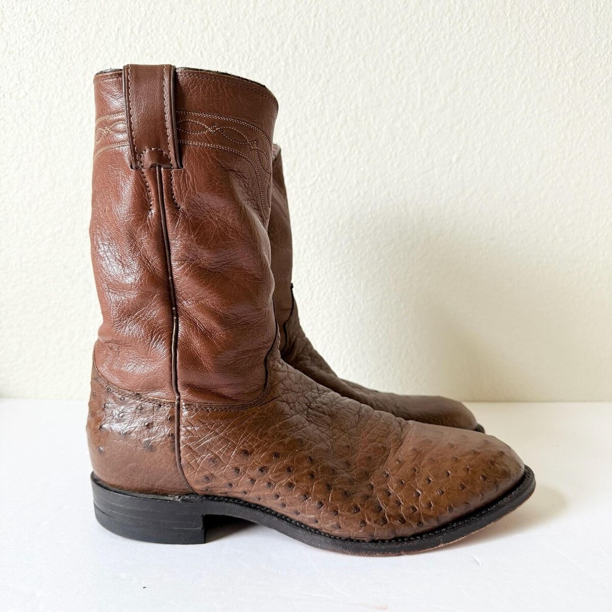 - Vintage Justin Men's Brown Cowboy Roper Boots Size 9EE Ostrich Western Round Toe
