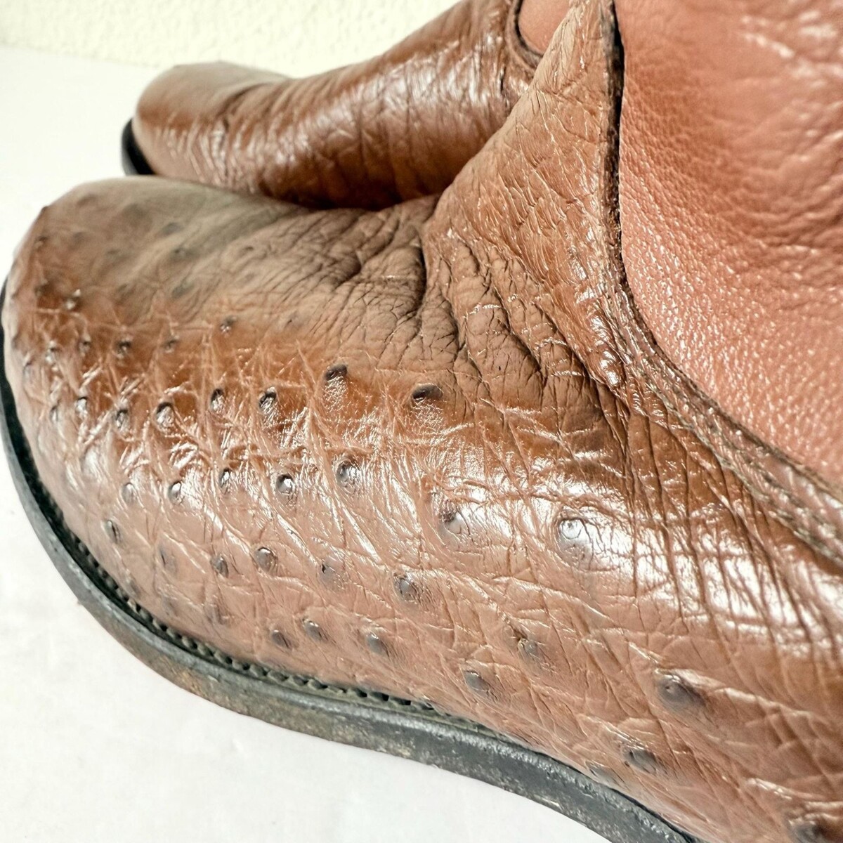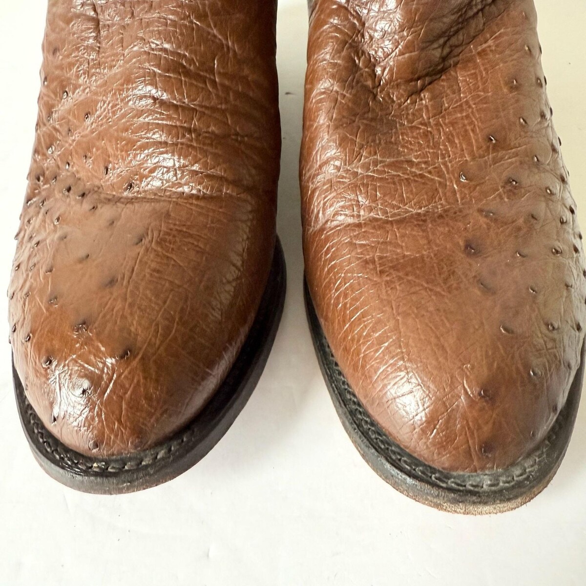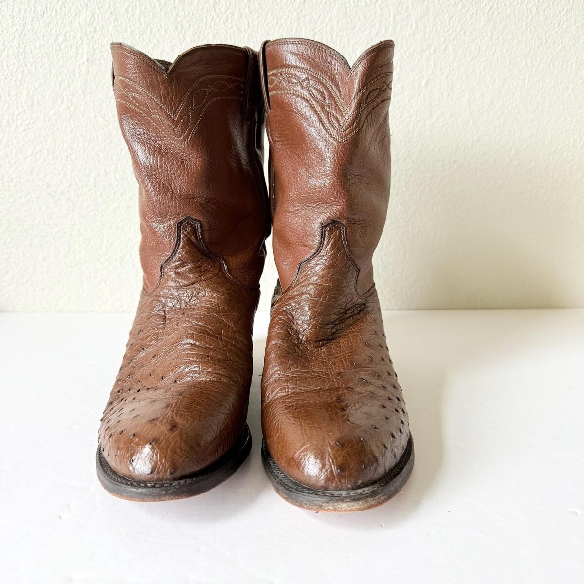 - Vintage Justin Men's Brown Cowboy Roper Boots Size 9EE Ostrich Western Round Toe