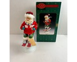 Add nostalgic alpine charm to your holiday decor with this vintage Fabriche ?Powder Hound? Skiing Santa by KSA Collectibles. Produced around 1999?2000, this hand-painted 12-inch figurine features Santa in full ski gear on a spring-mounted snow base, complete with box and hang tag. A perfect addition to any Christmas collection and now over 20 years old, making it Etsy-eligible.