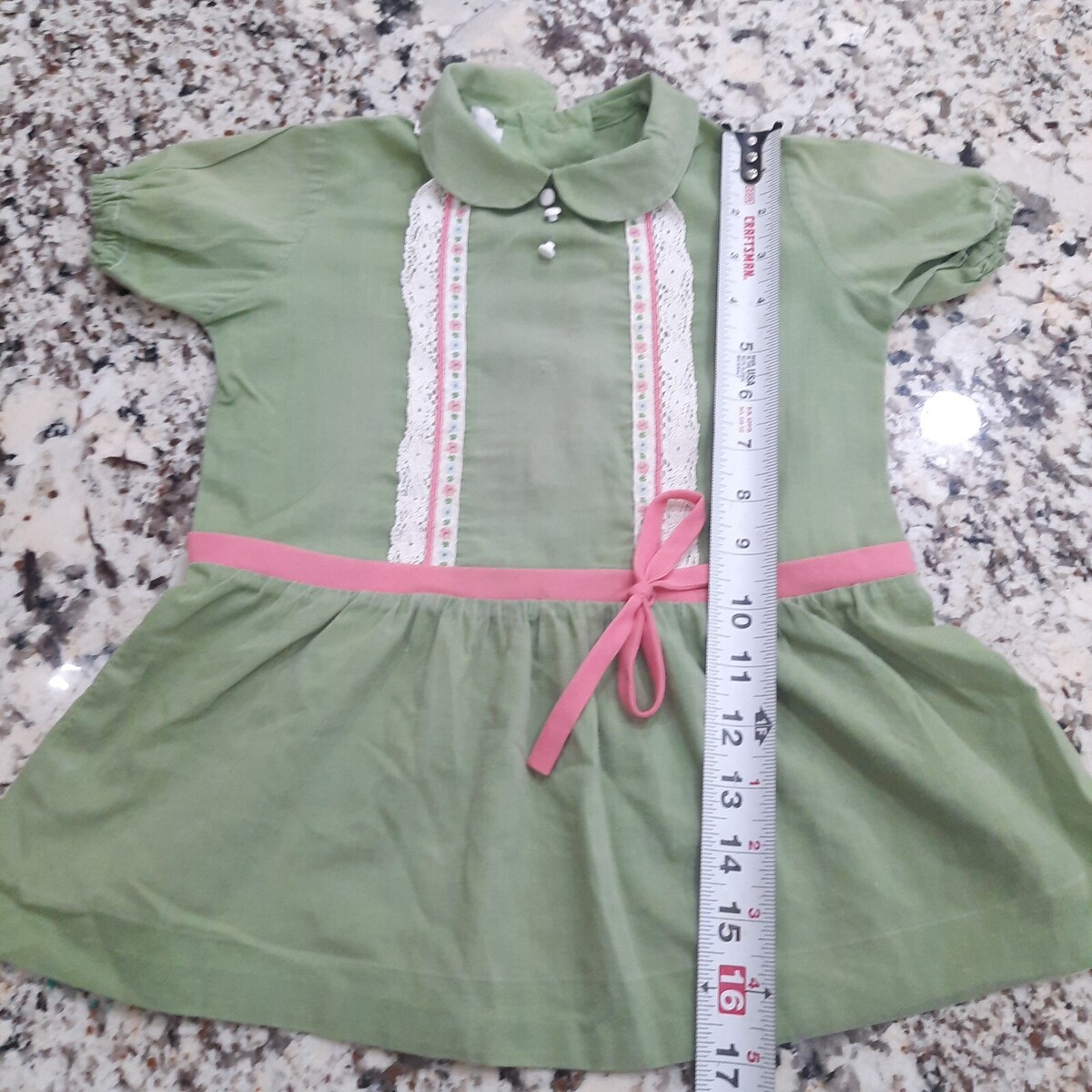 Vintage Kate Greenaway girls dress green 4 toddler pink lace peter pan collar