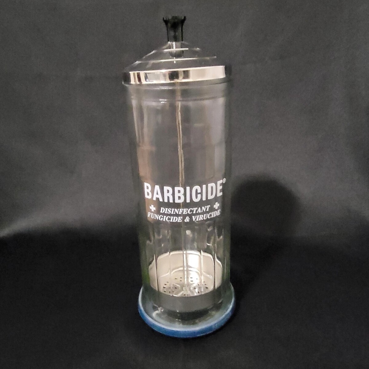 Vintage Kings Barbicide Barbers Disinfectant Glass Jar Metal Lid Germicide 11"