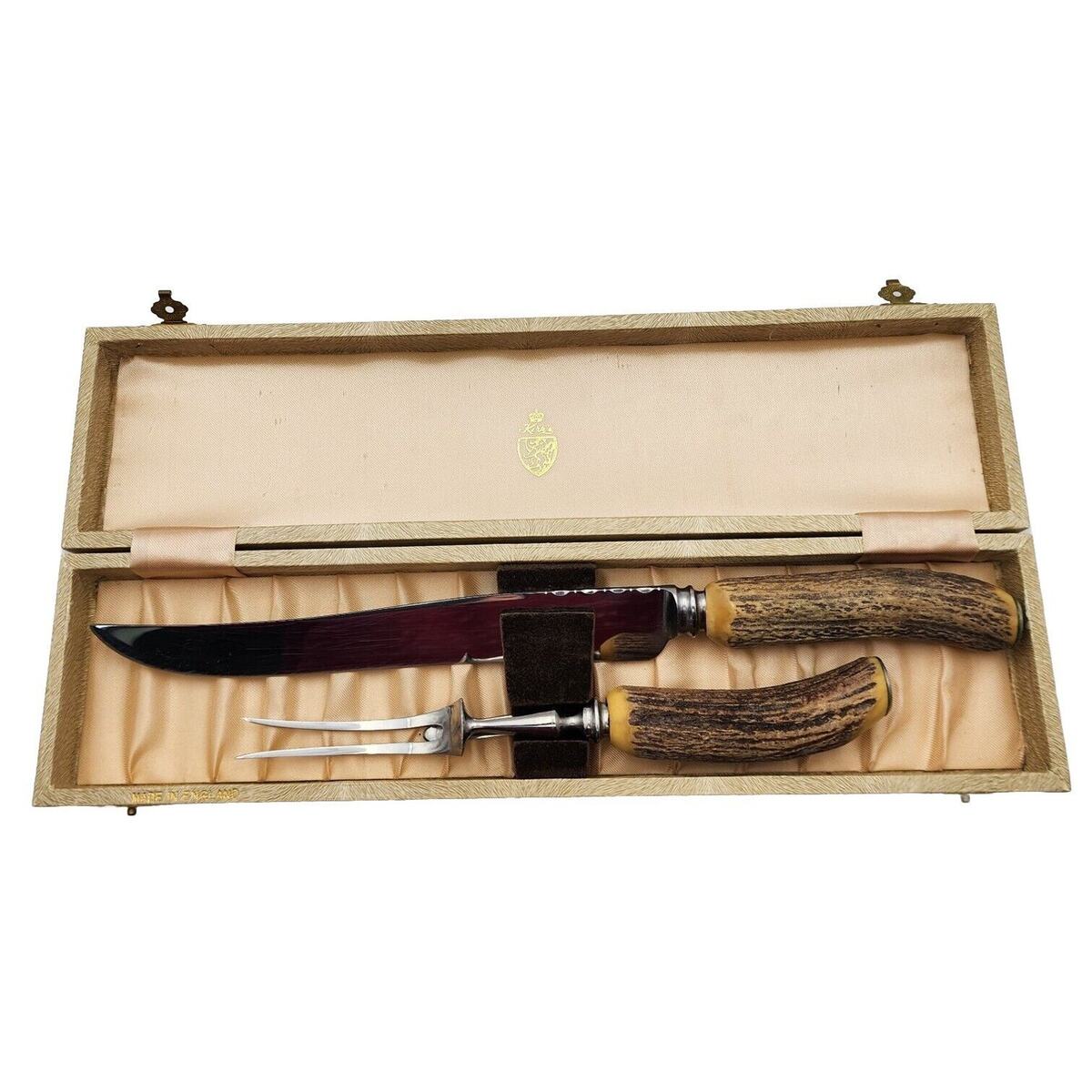 - Vintage Kirk’s Antler Handle Stainless Steel Knife & Fork Set Sheffield England