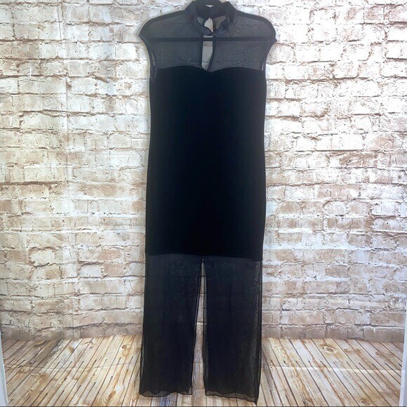 - Vintage Kitty USA Black Velvet Sheer Maxi Dress Size Small
