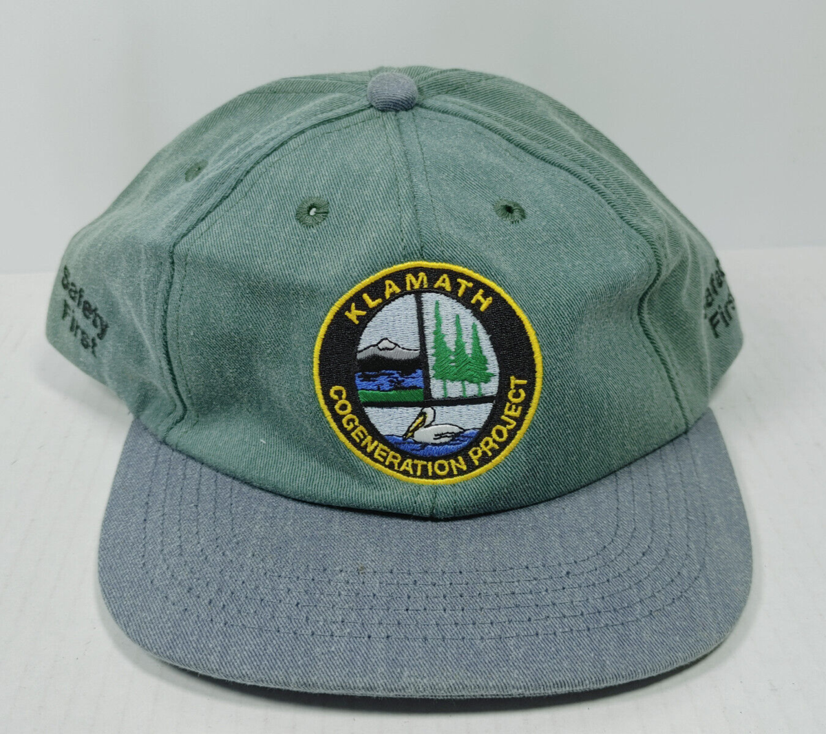 - Vintage Klamath Cogeneration Project Green Blue Cap Hat LEGEND USA Safety First