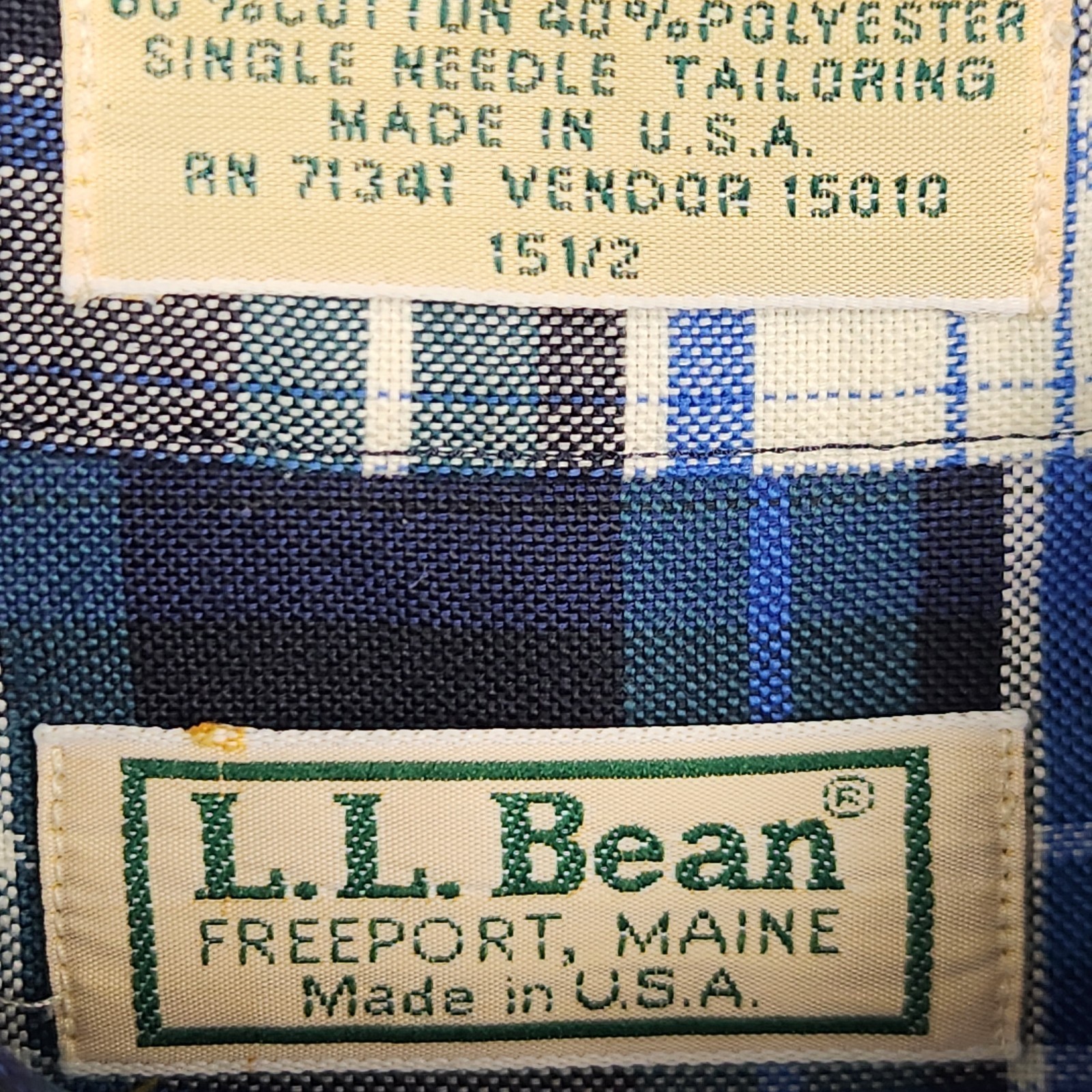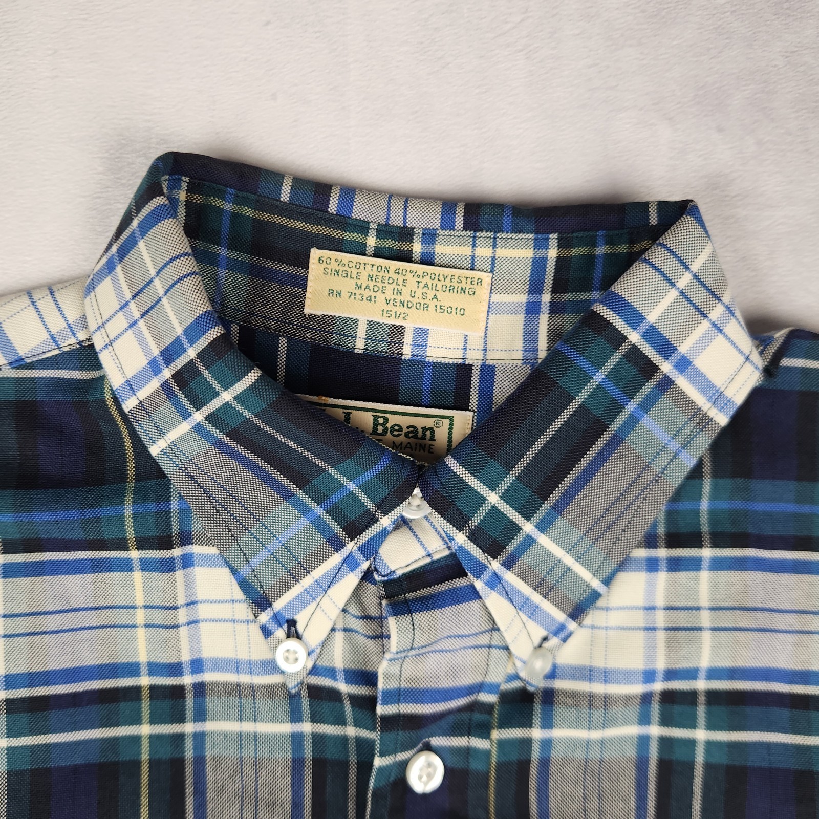 - Vintage L.L.Bean Shirt Men's Medium 15 1/2 Blue Green Plaid Freeport Maine USA