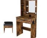 - Vintage LED Vanity Table, Mirror, Outlet, Stool, Small Bedroom