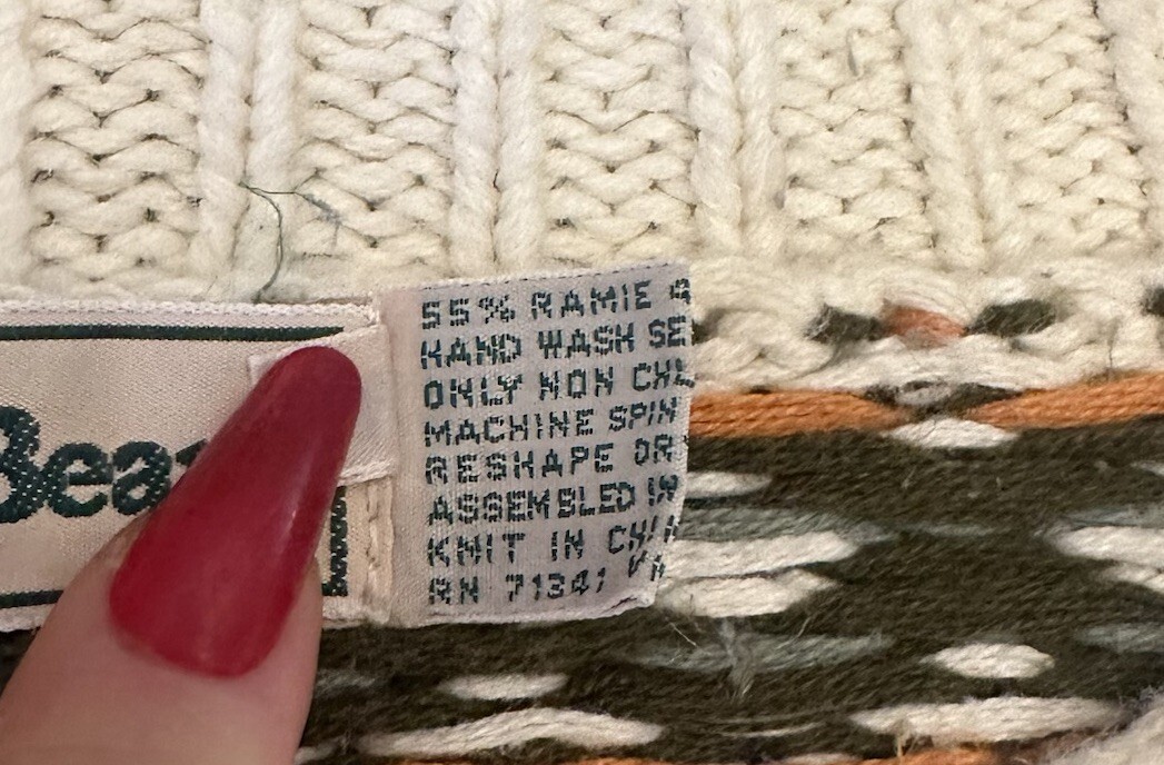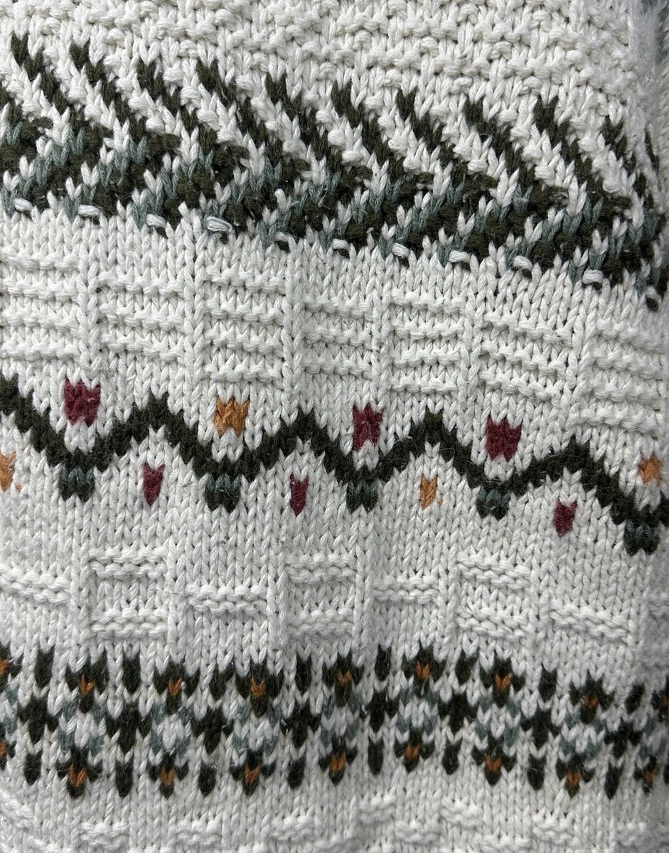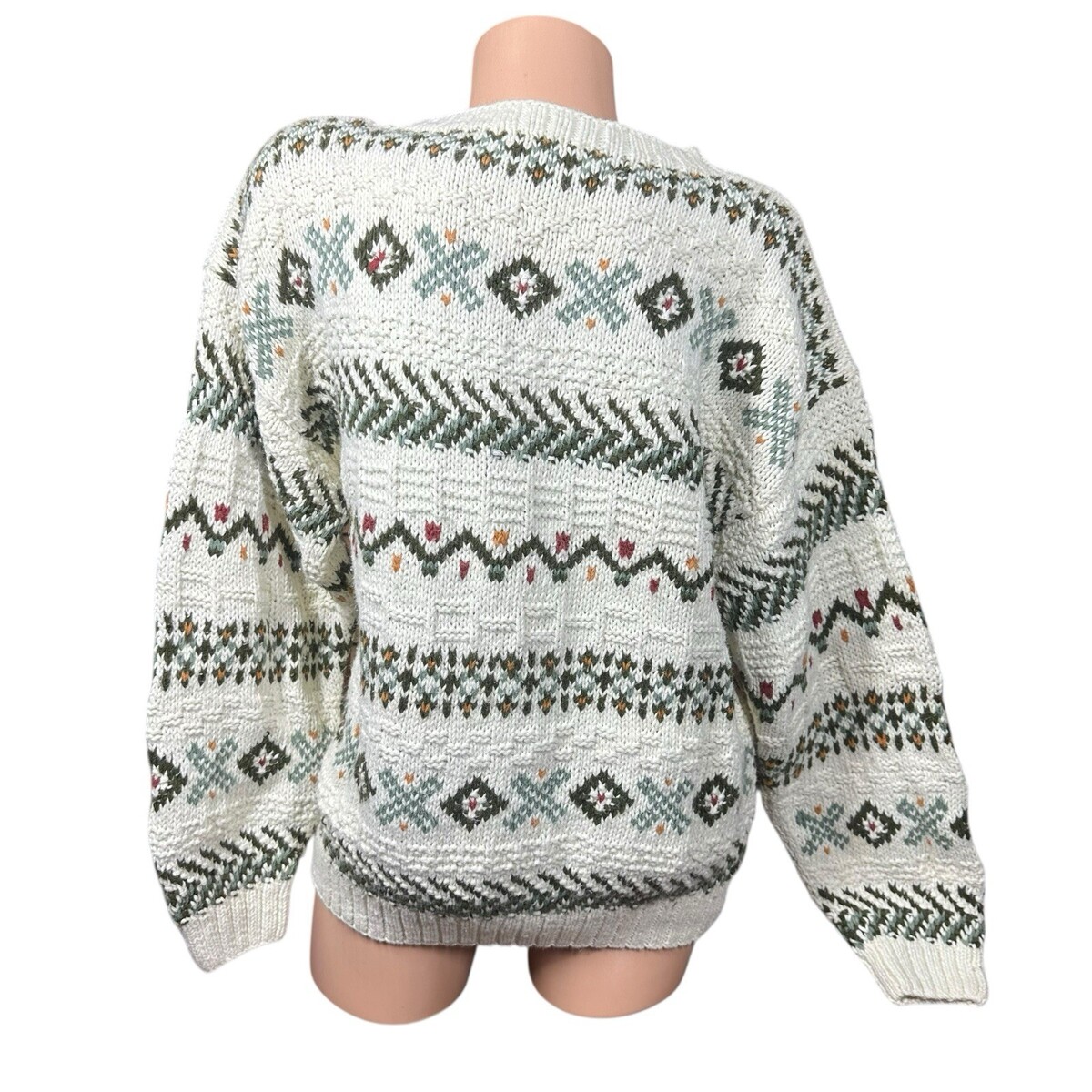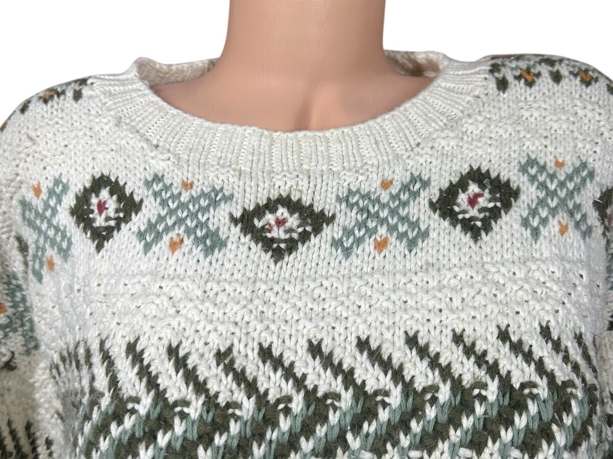 - Vintage LL Bean Knit Sweater Womens L Ivory Green Fair Isle Pullover Chunky 90s