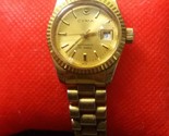 Vintage Ladies Automatic Cyma Hacking 25J Swiss ETA 2671, 18kgp with 258 x 31mm case with original Dial , hands, stem, crown. Winds, Runs as it should. Date window at 3 o'clock. Will fit a 6 1/2" wrist. Winds, Runs and Sets as it should and keeps fairly good time. Very nice Condition with minimal signs of wear. SEE THE PICS AND JUDGE IT FOR YOURSELF.