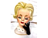 - VINTAGE LADY HEAD VASE NAPCO GRAY WITH BLACK GLOVED HAND DAISIES LARGE 6”