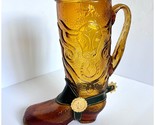 Vintage Large Amber Glass Cowboy Boot Mug with Spurs Leather MCM Bull Horseshoe