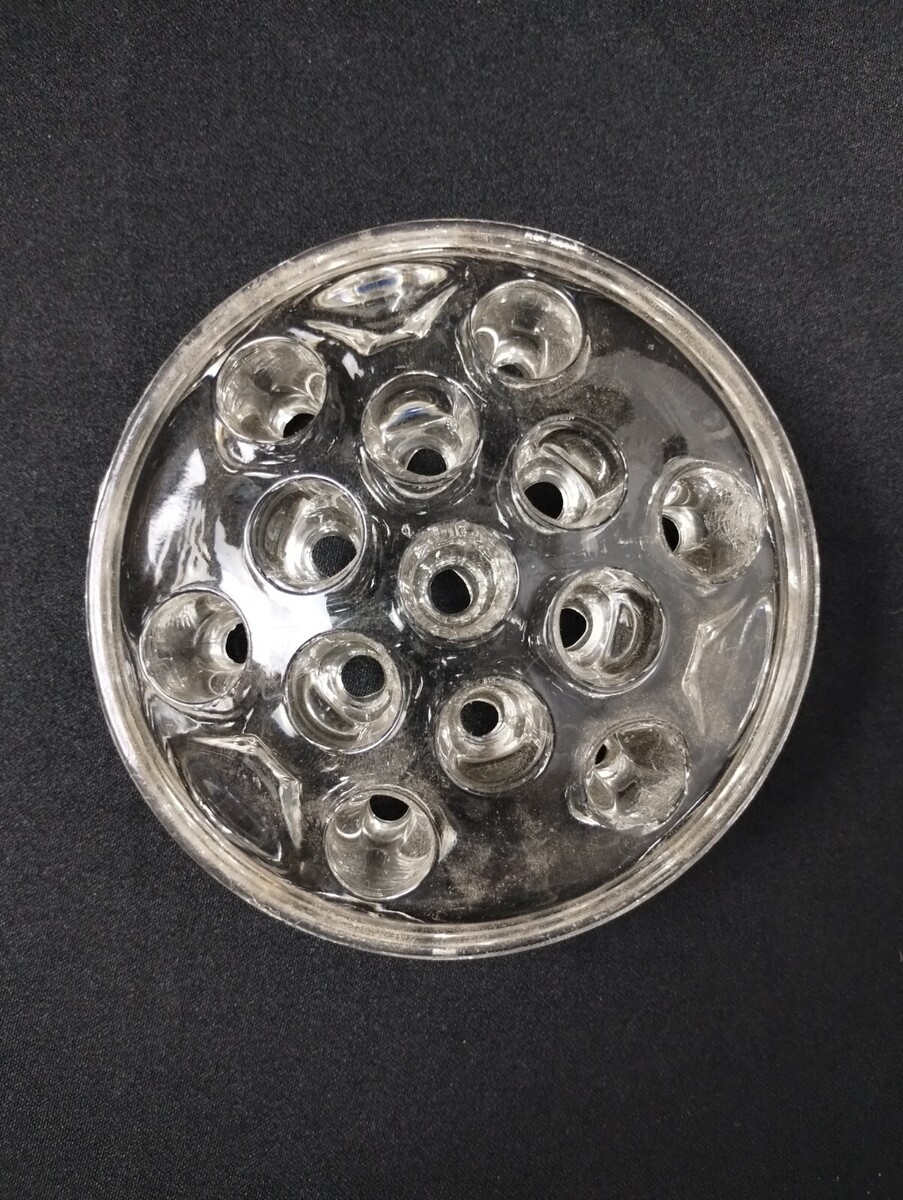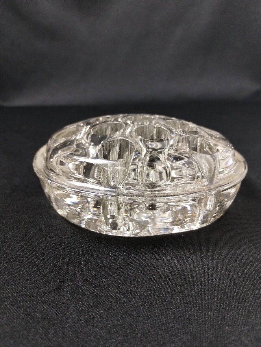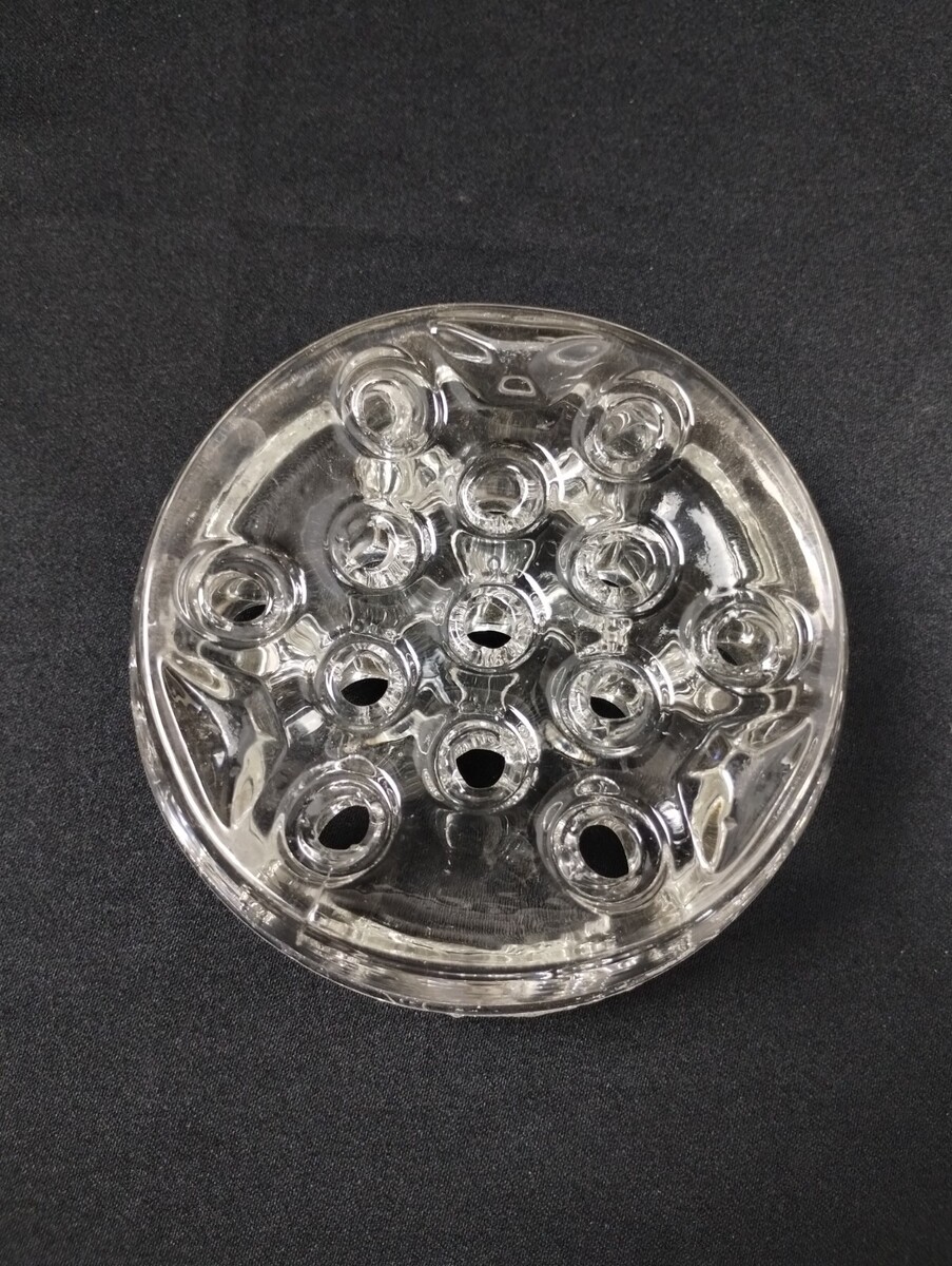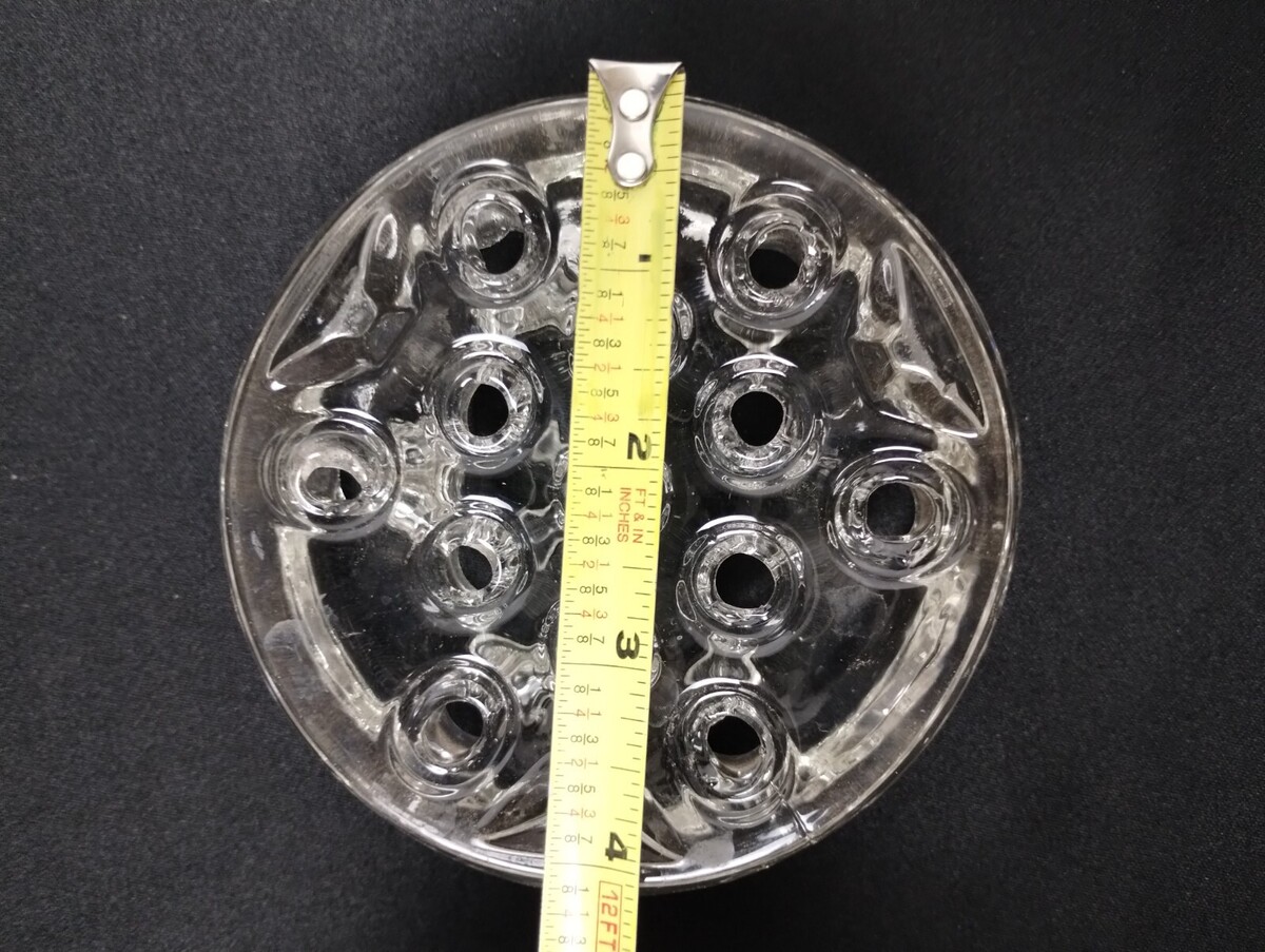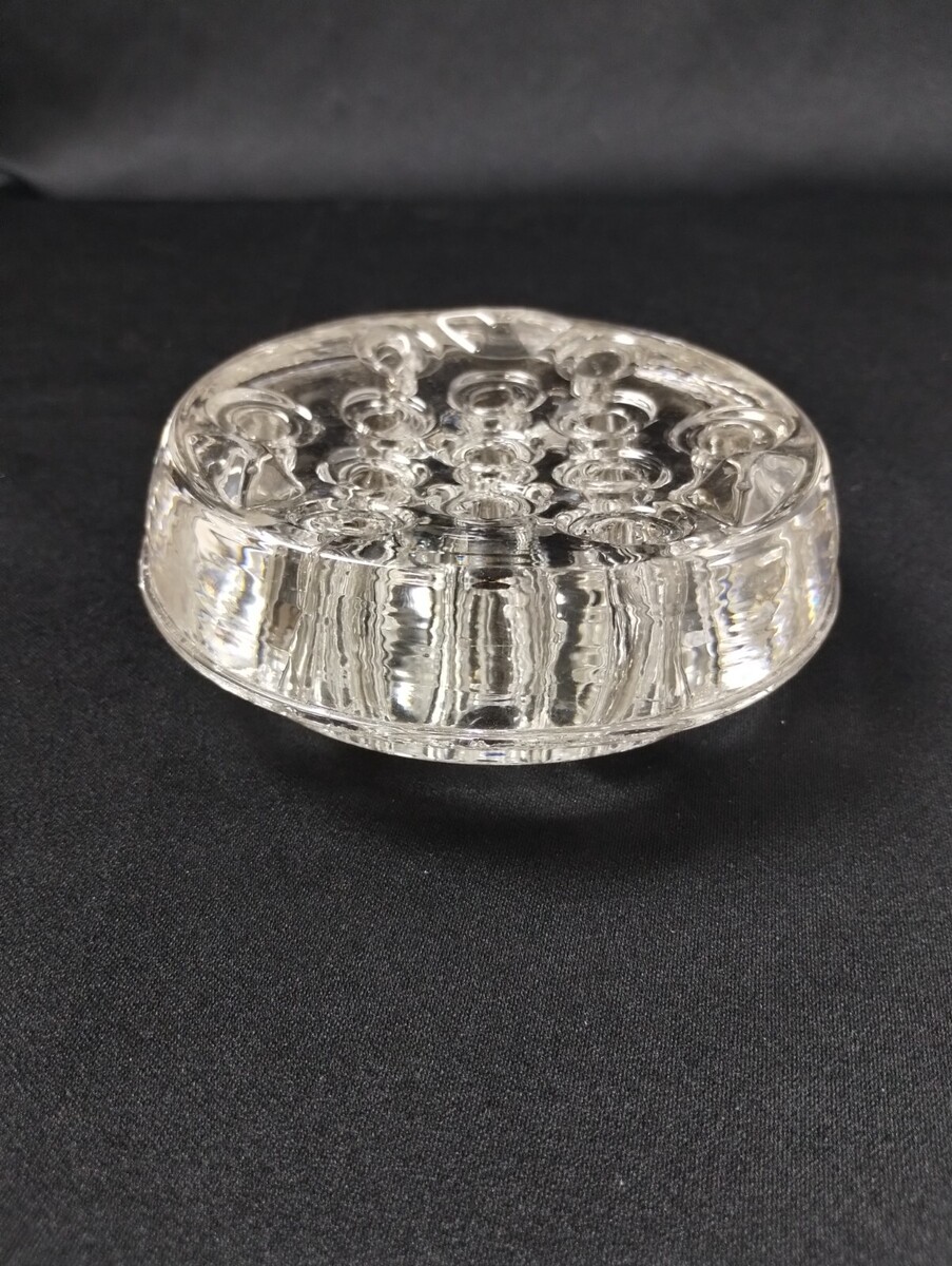 - Vintage Large Clear Glass Flower Frog Round With 16 Holes 4" Fitter
