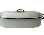 Vintage Large Fish Steamer Pot - 21.75?Lx8.5?Wx7?H (to the lid). The pot itself not including the top or handles measures 20x8.25x4.75?. In used condition. Needs a good washing. Has some stains and it?s dusty throughout. On the outer black edge, it looks like there?s a little white paint on the black edging. I believe it?s made of aluminum or some other similar type of metal.