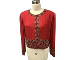 Vintage Laurence Kazar Red Silk Beaded Jacket Womens Large 80s Evening