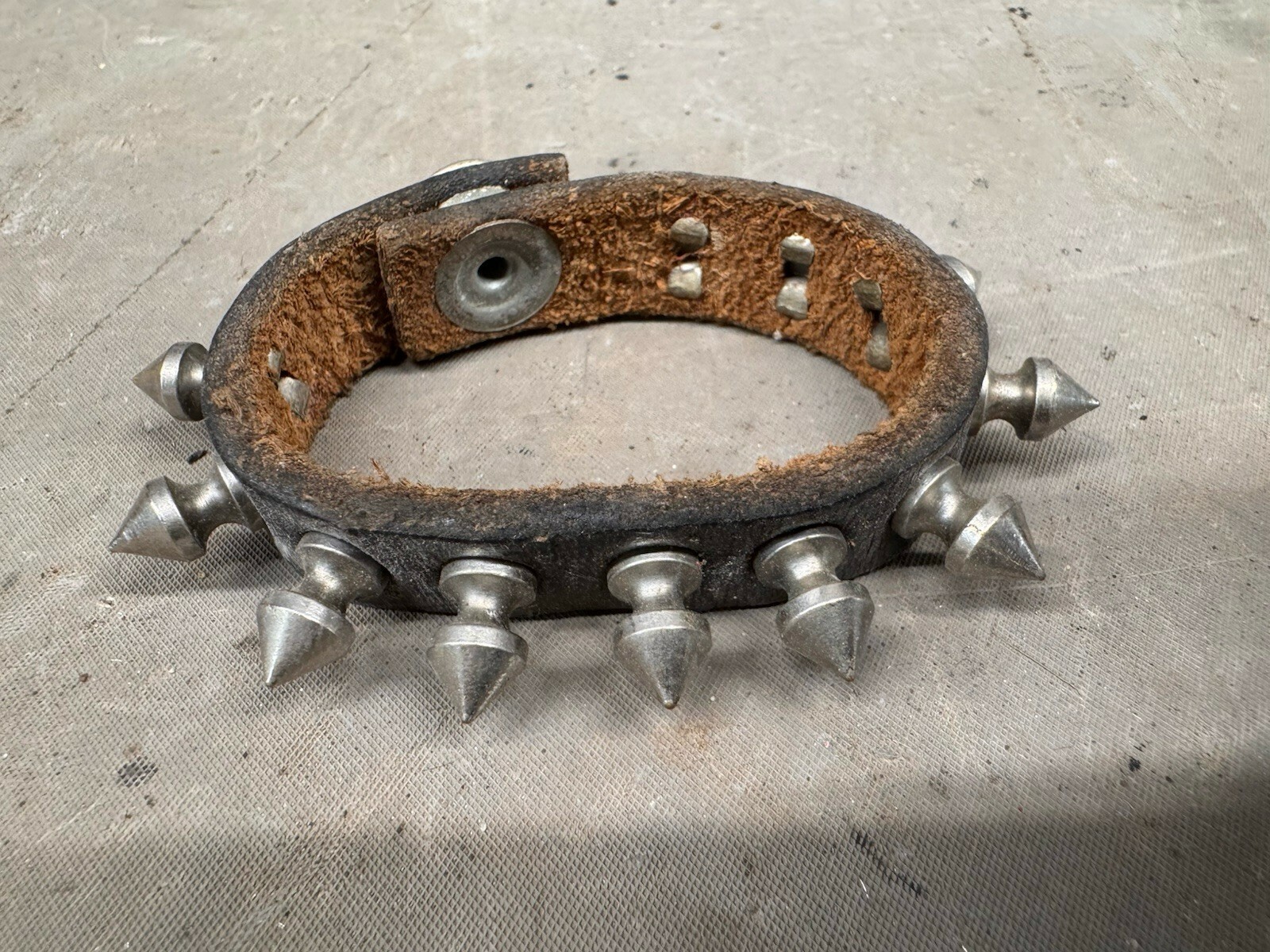 - Vintage Leather Studded Bracelet One Row Stud Punk Goth Fetish Thrash Metal 80s