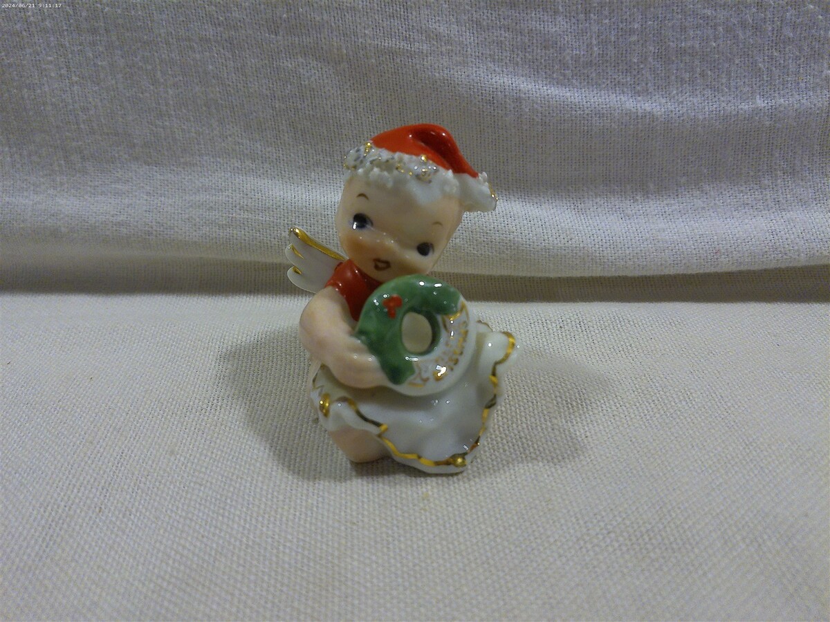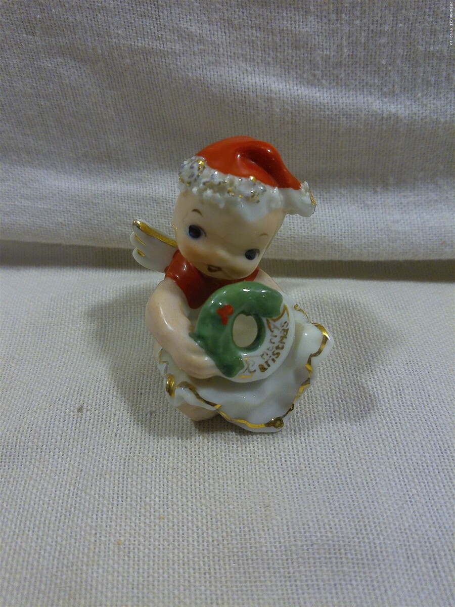 - Vintage Lefton Japan Ceramic Christmas Baby Angel with Wreath Figurine