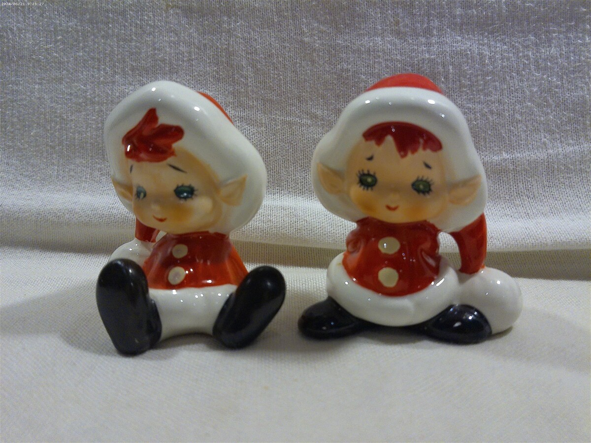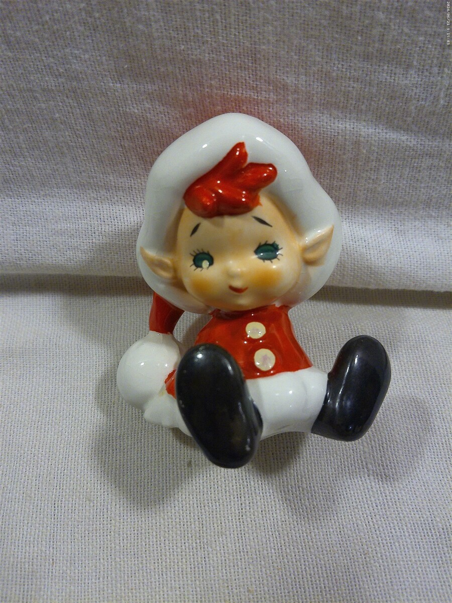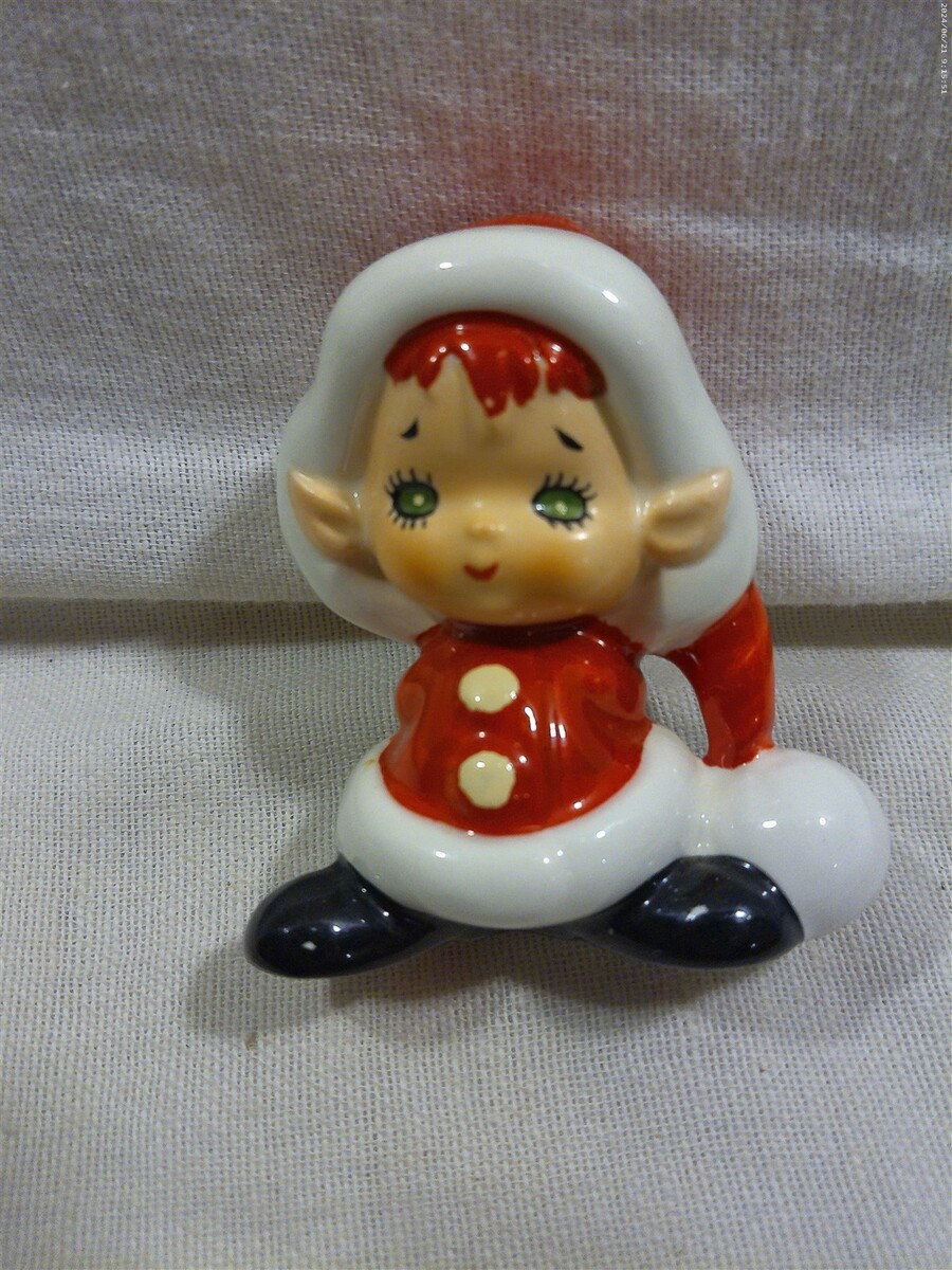 - Vintage Lefton Japan Ceramic Christmas Santakins Pixie Elf Ornaments Set of 2