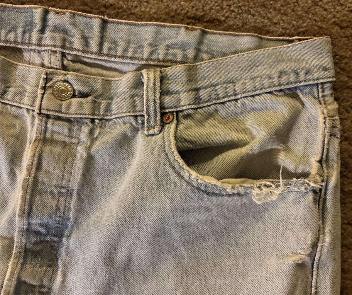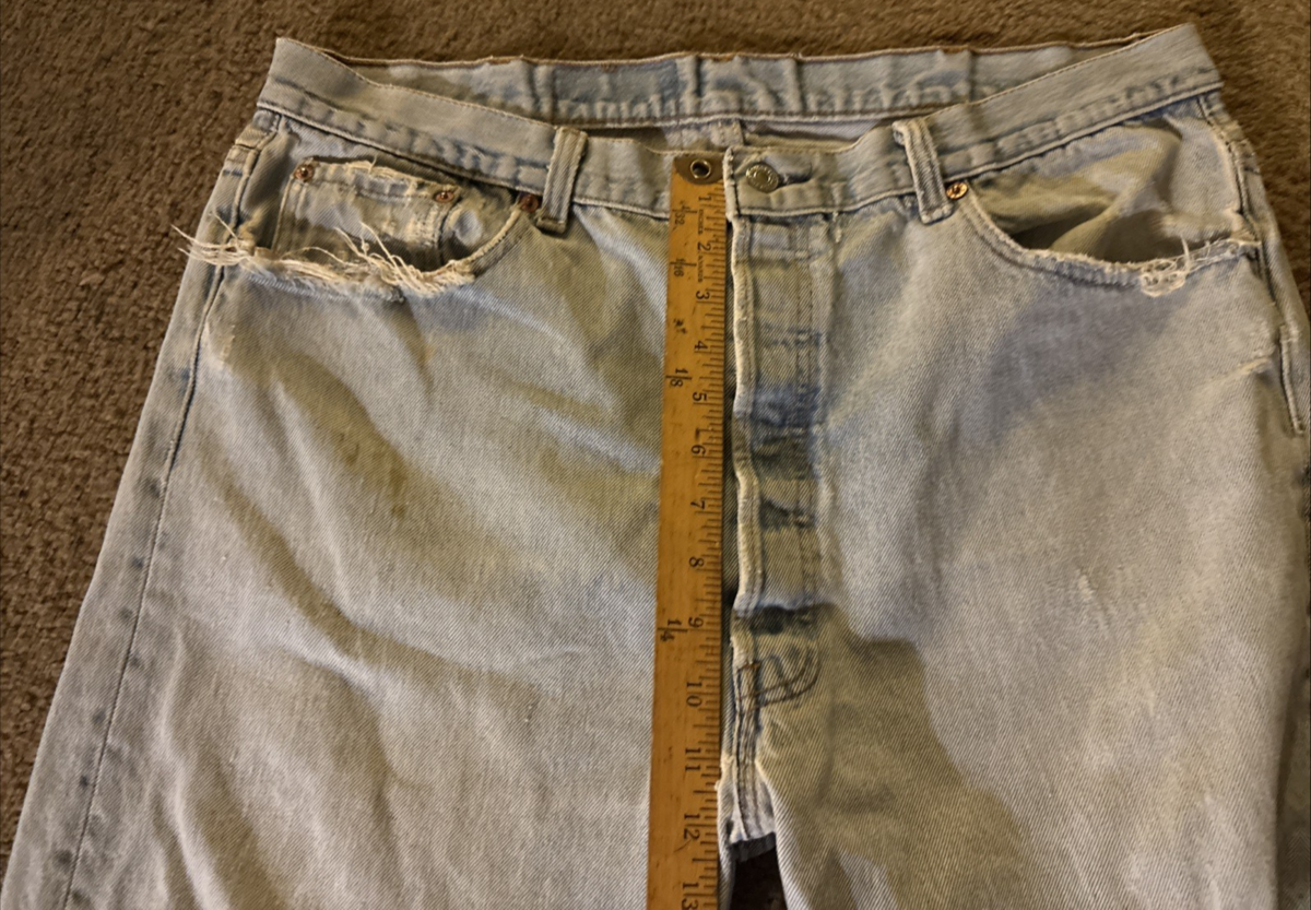 - Vintage Levi 501xx Jeans actual 36 X 34 Blue Light Wash Made in USA Distressed