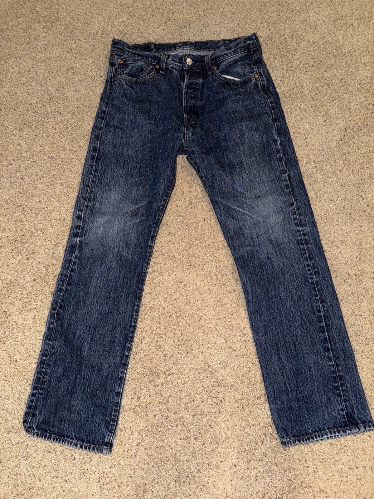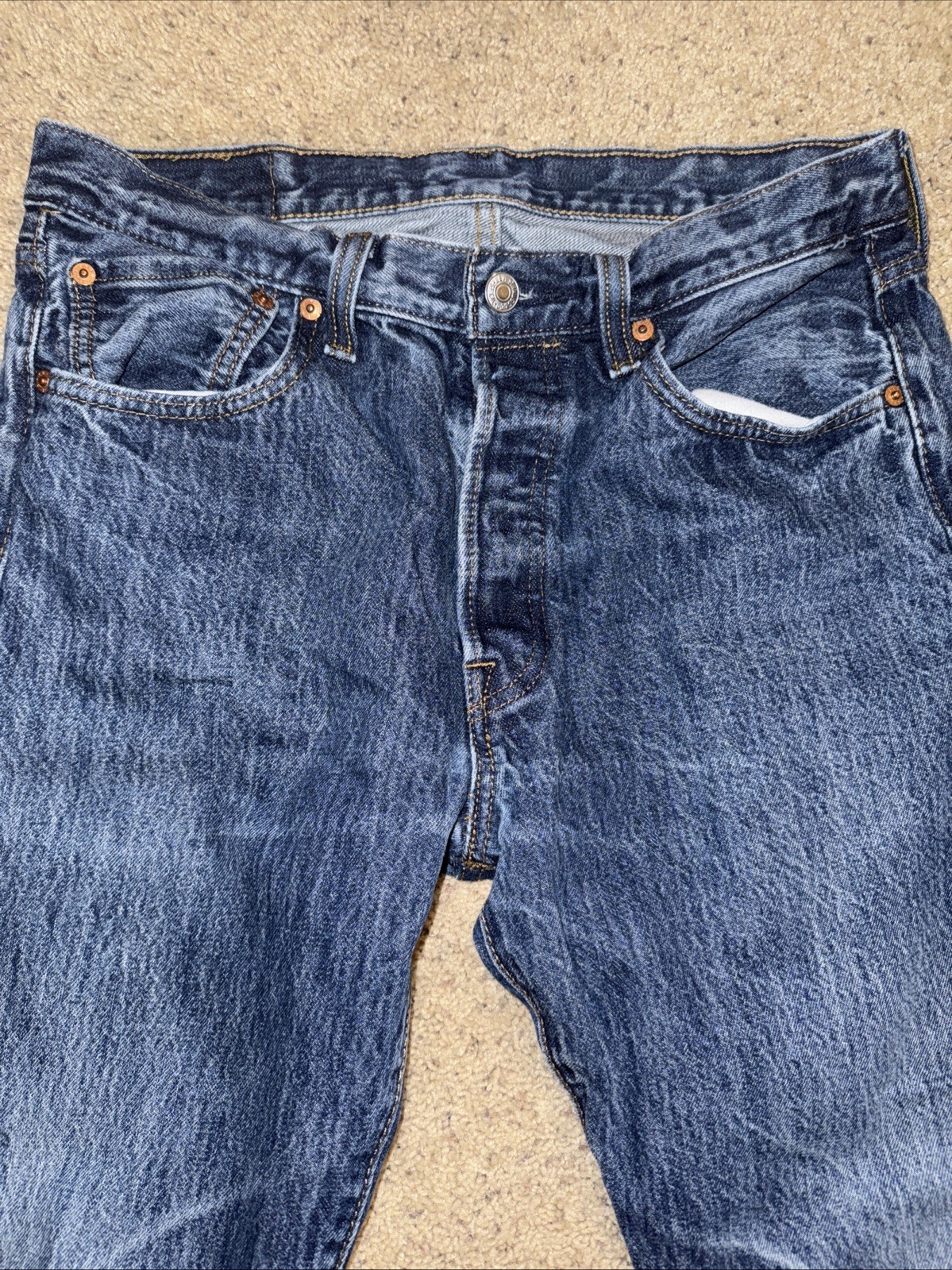 - Vintage Levis 501xx Button Fly Dark Wash Faded Blue Jeans Size W33 L32