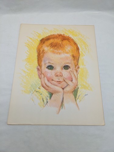 - Vintage Little Boy With Freckles Holding Face Art Print 11" X 14"