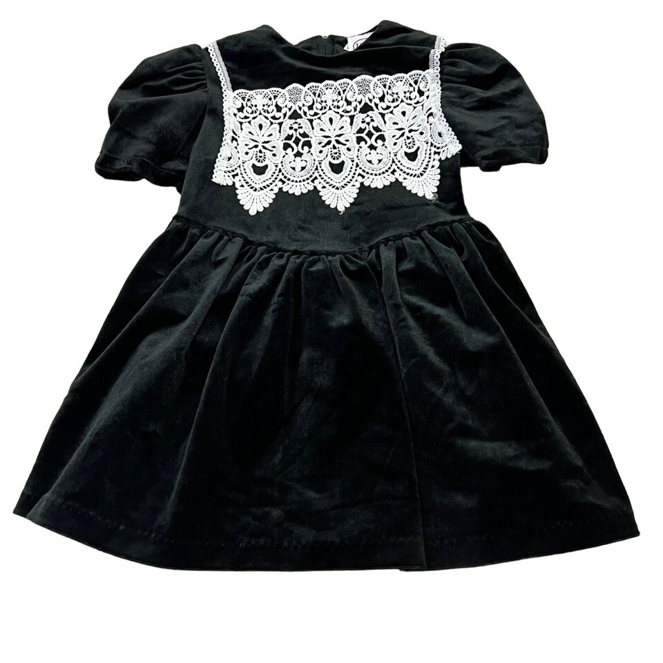 Vintage Little Miss Velvet & Lace Dress Puff Sleeves Size 4