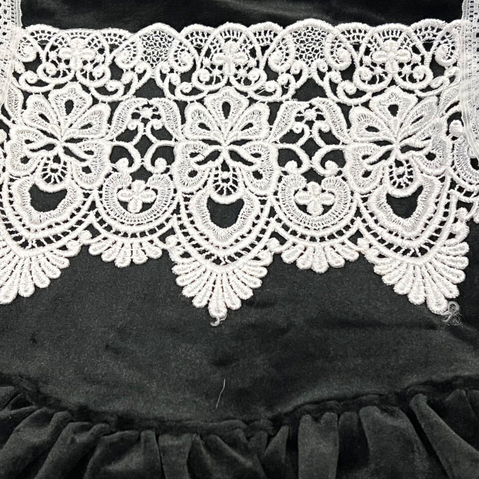 Charming vintage dress, ideal for special events. Features a luxurious velvet texture, delicate lace detailing, and puff sleeves, providing a timeless, elegant touch.