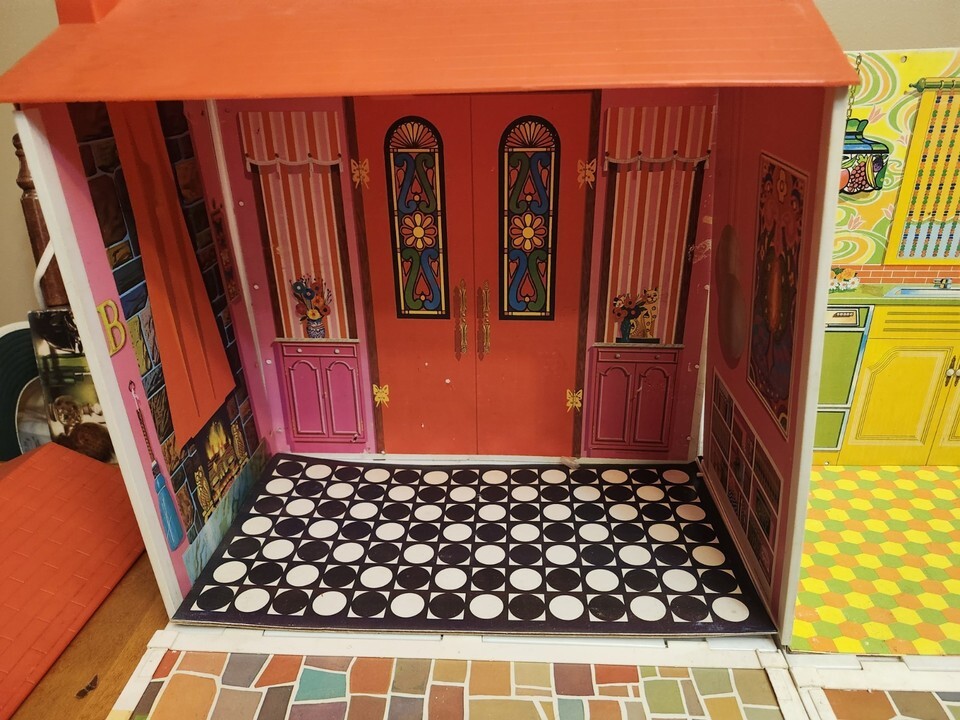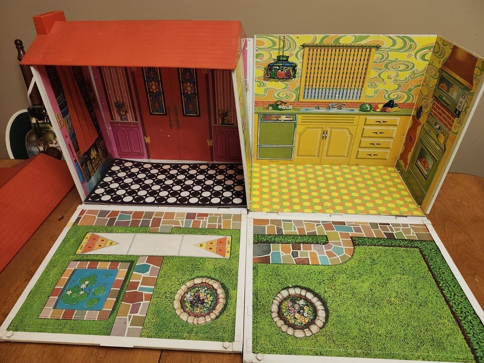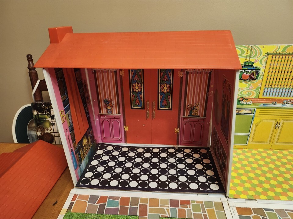 For immediate purchase is this Vintage Lively Livin' BARBIE House Parts 1971 Incomplete This house is NOT complete, but it does have many of the original parts. Have been in storage so cleaning will be required. Please see what is included, wear, some light damage, etc. Sold AS IS.