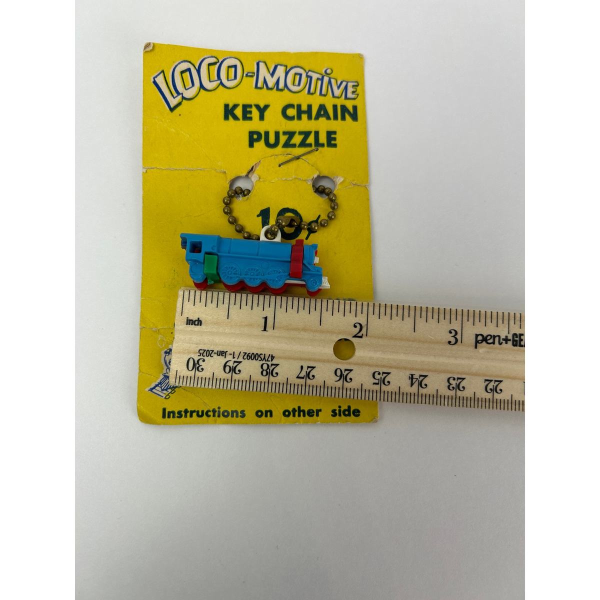 - Vintage Loco-Motive Key Chain Puzzle Train 1950s Plastic Toy on Display Card