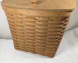 Vintage Longaberger Mail Basket 1992 Medium Slant Wood Top Leather Hinges w/ lid