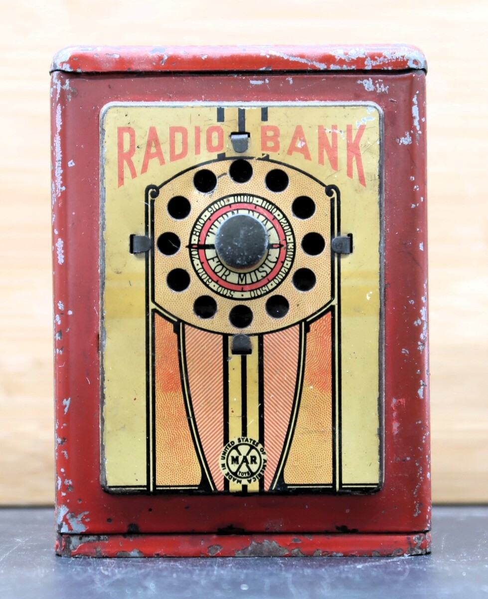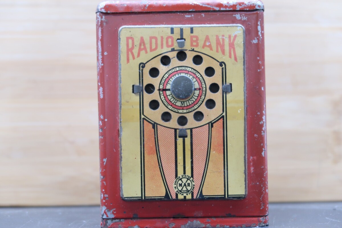 - Vintage MARX Tin Radio "Musical" Coin Still Bank 4.5"x2"x3" HTF No Key