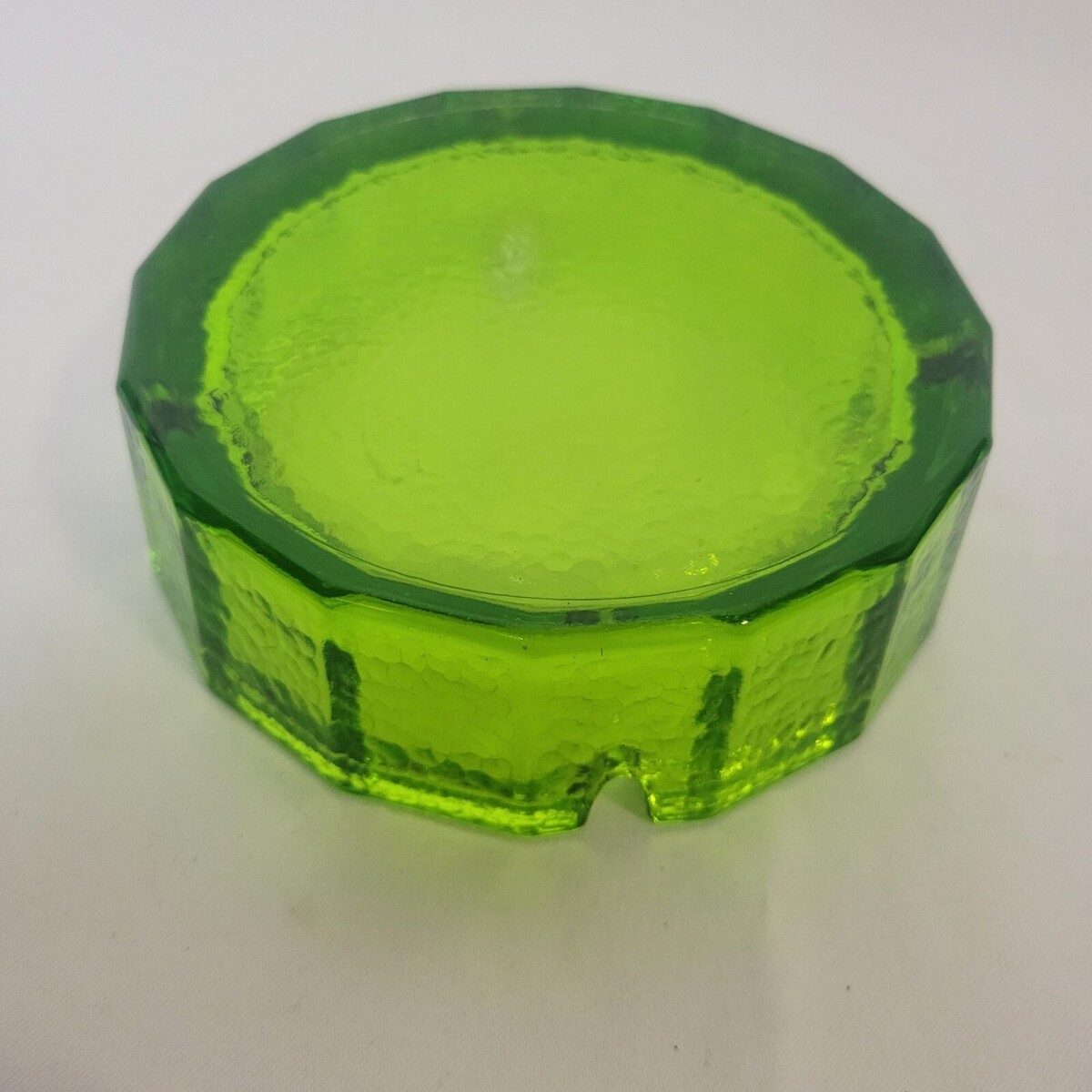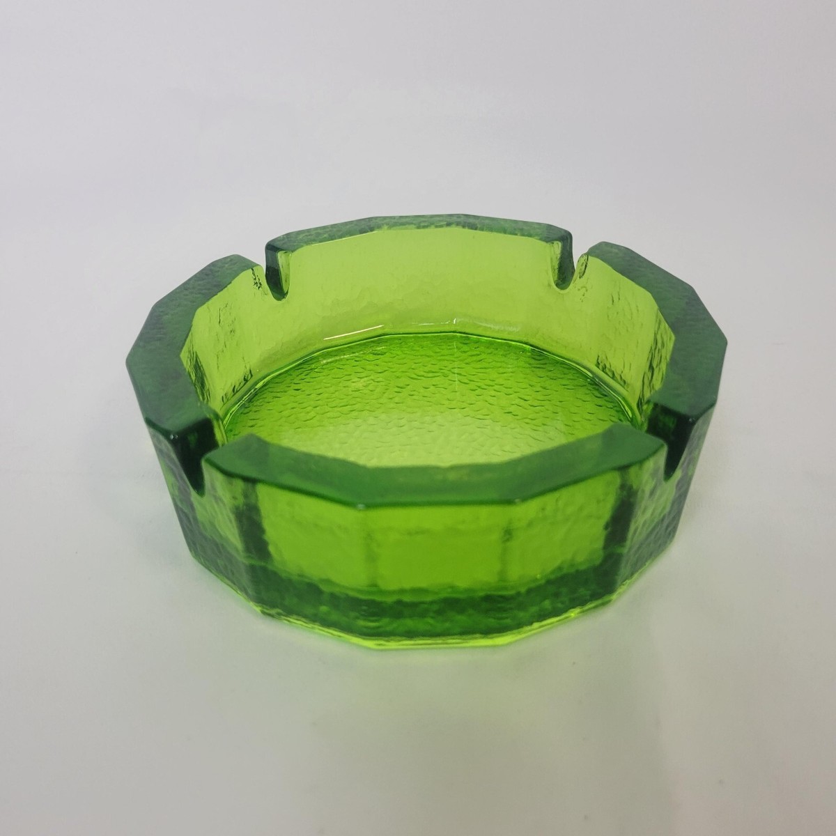 - Vintage MCM Blenko Green Blue Pebble Glass Octagon Ashtray Large Heavy Round 6"