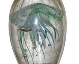 - Vintage MCM Green Jelly Fish Aquarium Blown Art Glass Paperweight 4.5”T 2.5”w