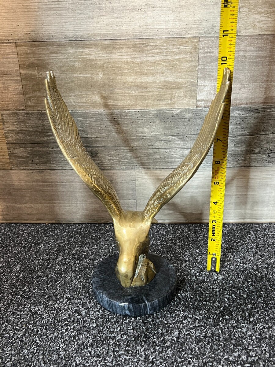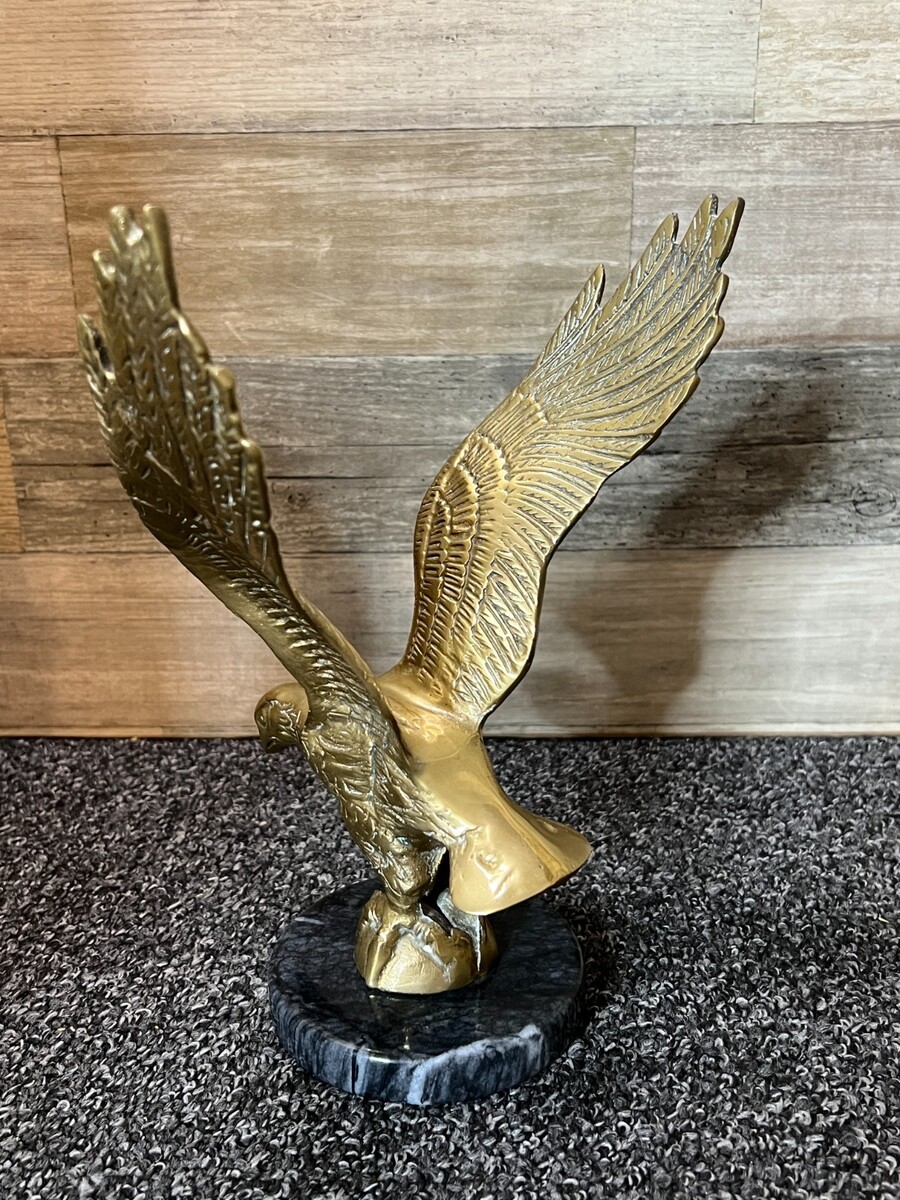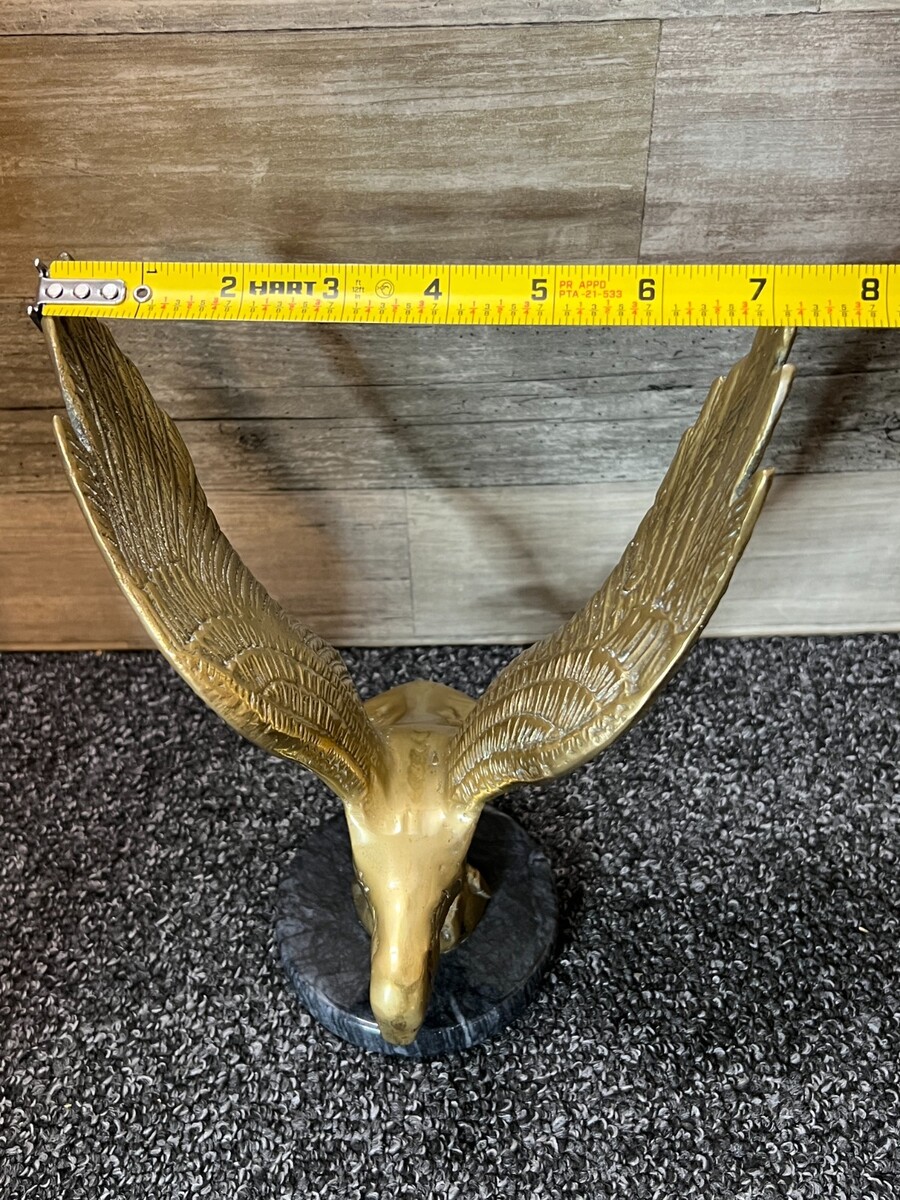 - Vintage MCM Solid Brass American Eagle Statue w/ Spread Wings on Marble Base 10"