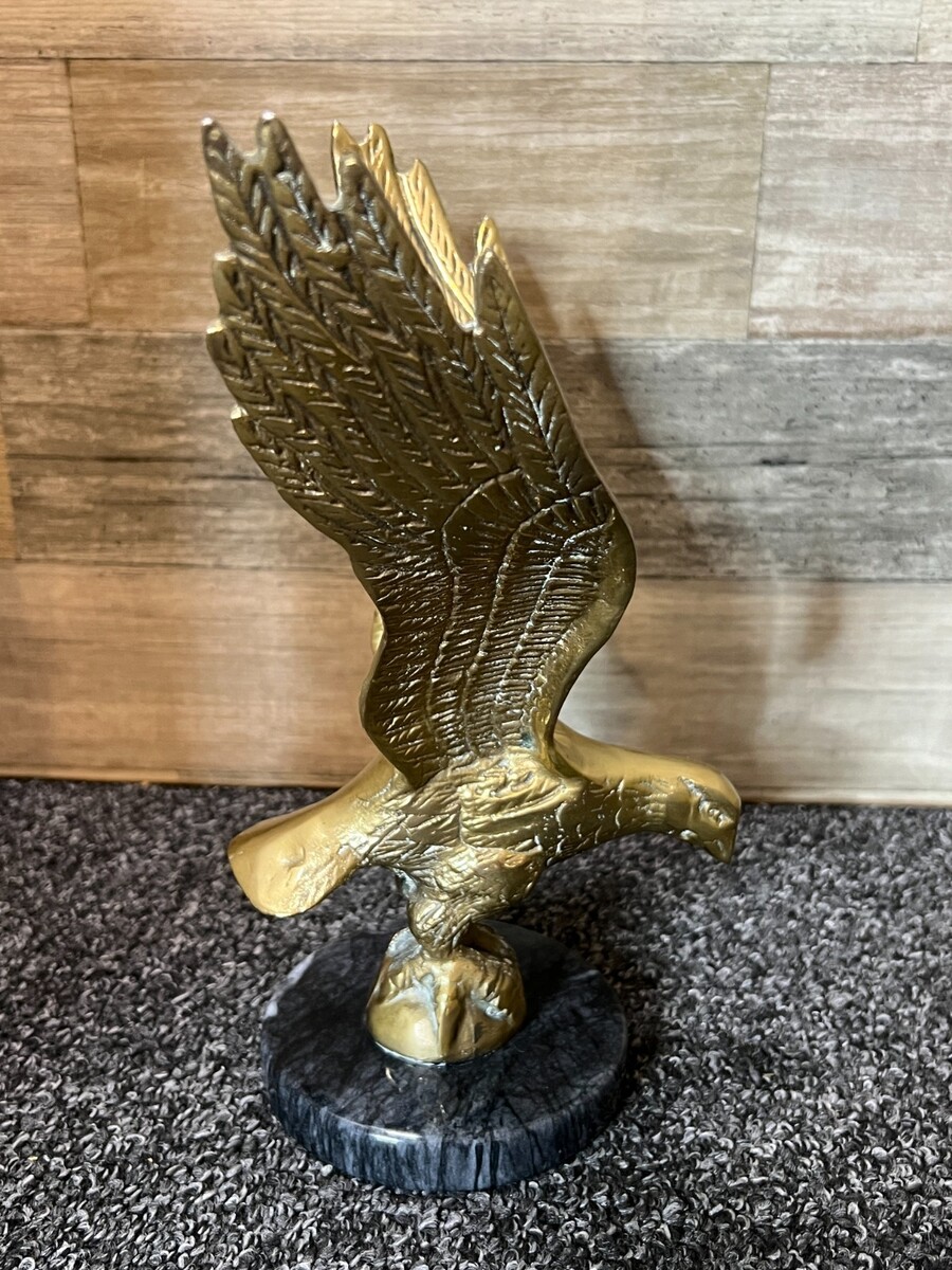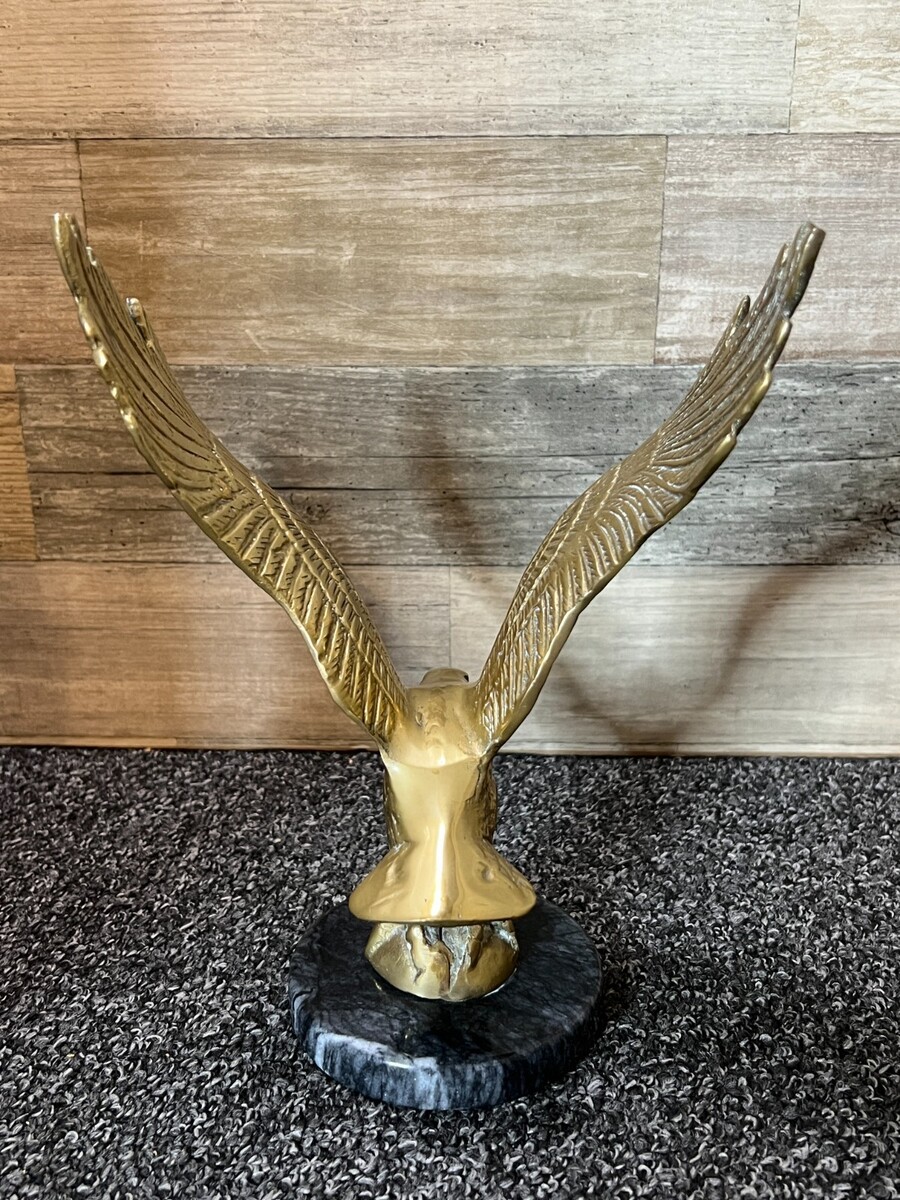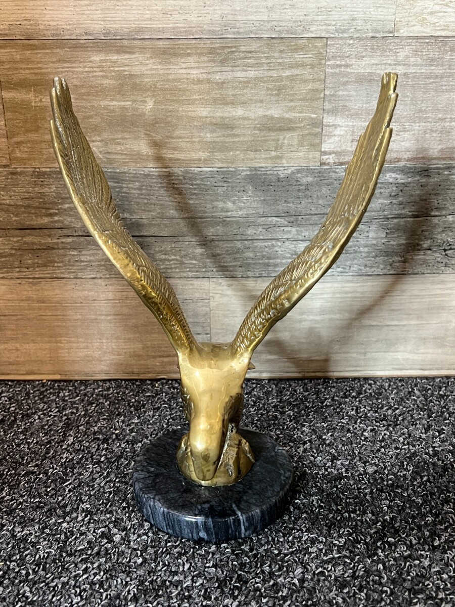 - Vintage MCM Solid Brass American Eagle Statue w/ Spread Wings on Marble Base 10"