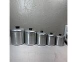 Vintage MCM Spun Aluminum Canister Set Flour Sugar Coffee Tea Lids Black Grease
