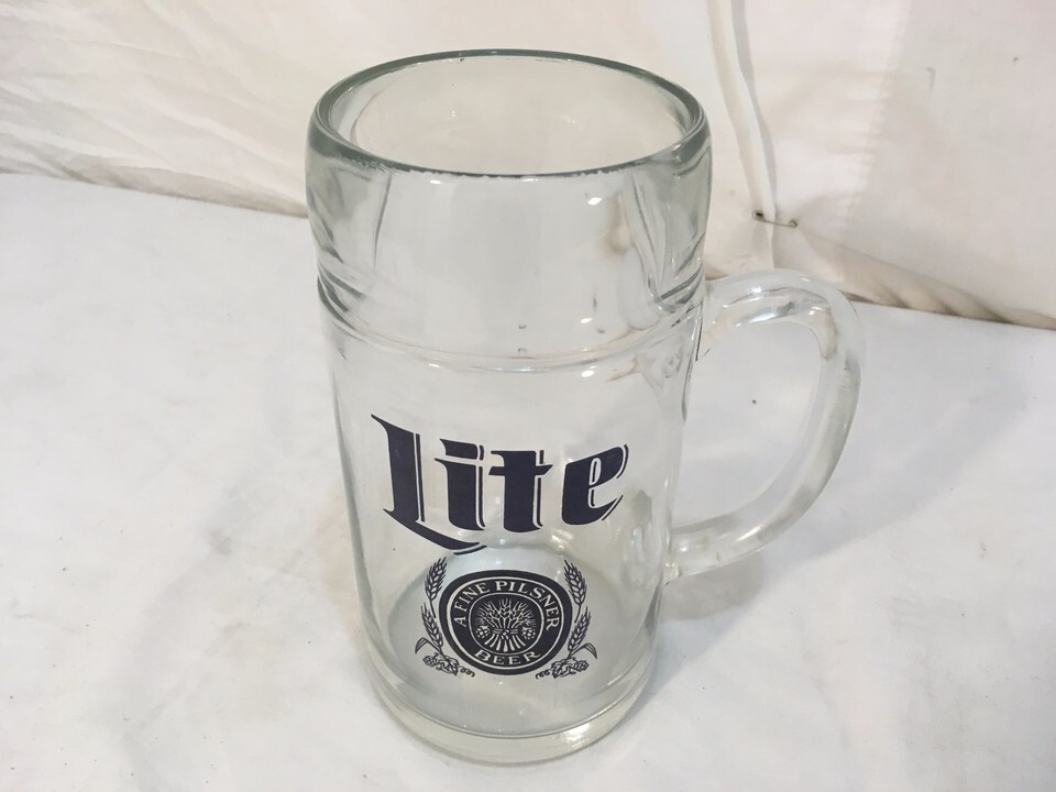 - Vintage MILLER BEER 8" X 3" Heavy Glass Beer Alcohol Frozen Chilled Mug
