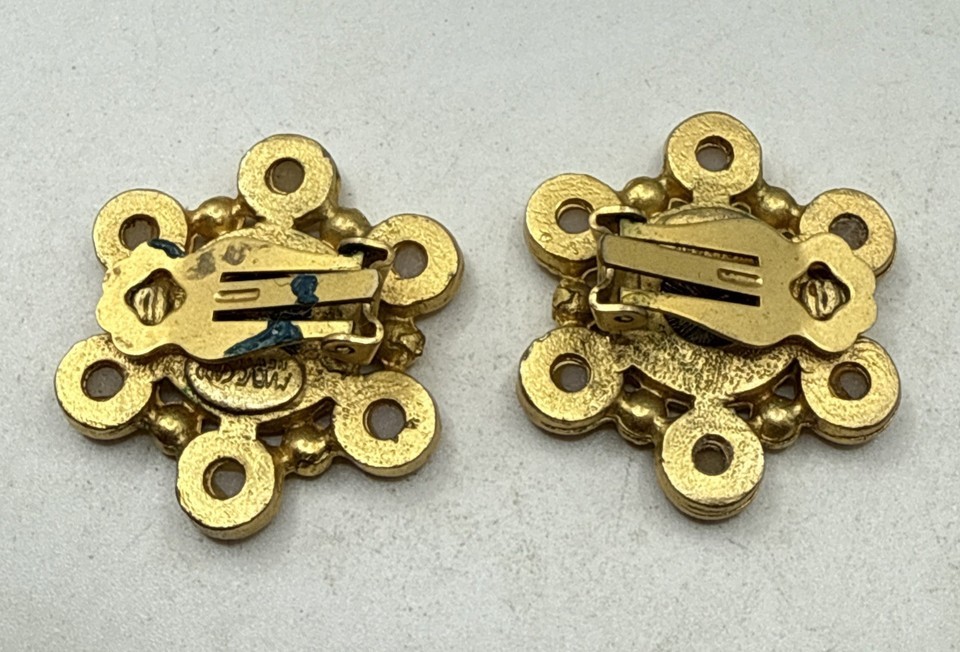 Vintage Maeve Carr Earrings Gold Tone Zodiac Horse Silver Coin New York Clip On