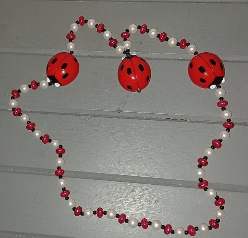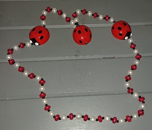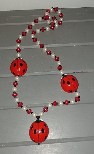 - Vintage Mardi Gras Beads Necklace Red Black Ladybugs NOLA New Orleans